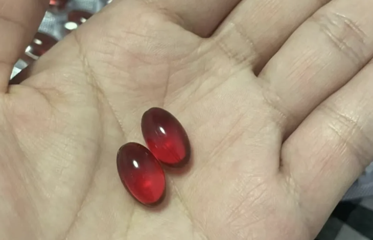 刘传刚给我们每人两粒南极磷虾油,颜色晶莹剔透,宛如流动的红宝石