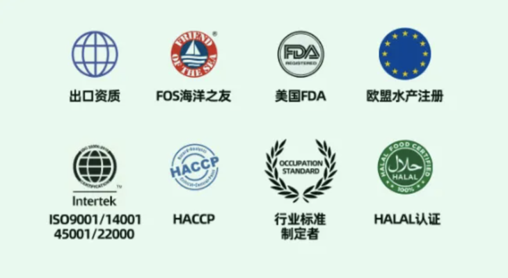 辽渔辽康顺利通过多项国际高端认证,包括出口备案、ISO2200、以及美国FDA认证、海洋之友认证、HACCP等,出口到美国、俄罗斯、韩国等20多个国家!