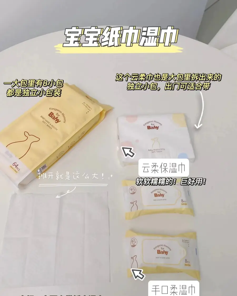 袋鼠比比婴儿云柔保湿纸巾的产品规格有每包40抽,而且价格很实惠,性价比超级高哦~👏🏻小巧便携装 轻松装进妈咪包~