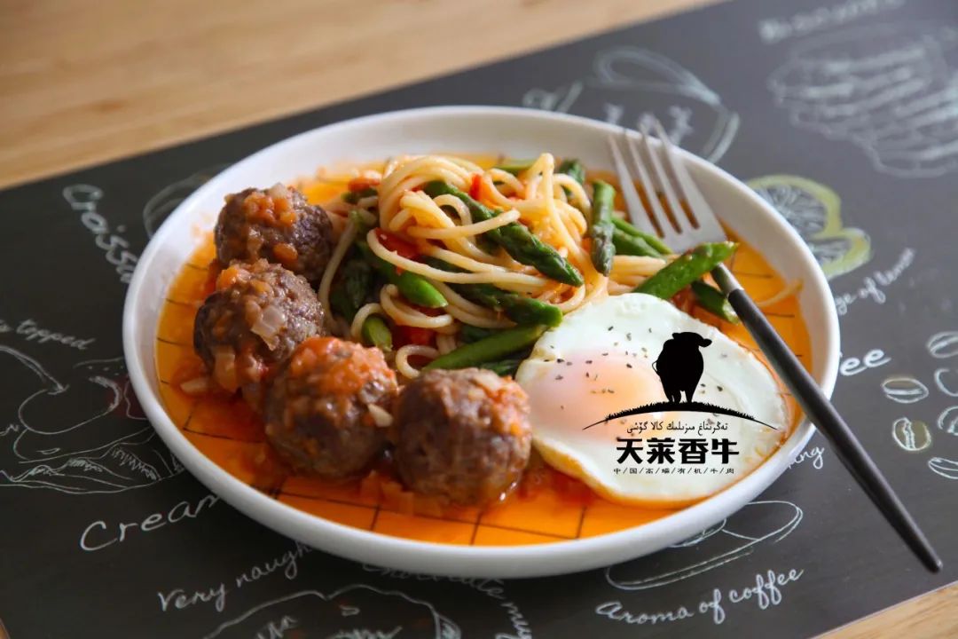 冰箱里经常会囤天莱香牛有机牛肉馅,中西餐都能hold住,非常方便。