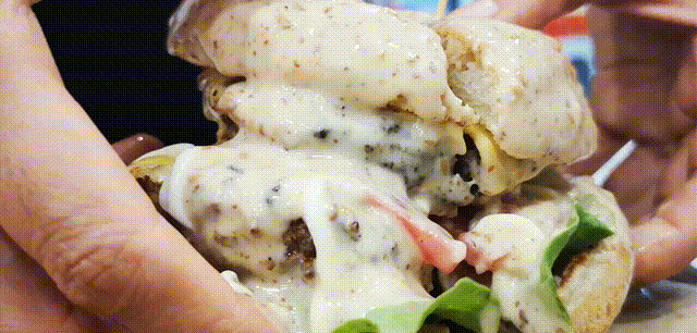 很饿很饿的时候,我们就煎一块牛肉饼,夹厚厚的芝士,夹着面包吃掉它!