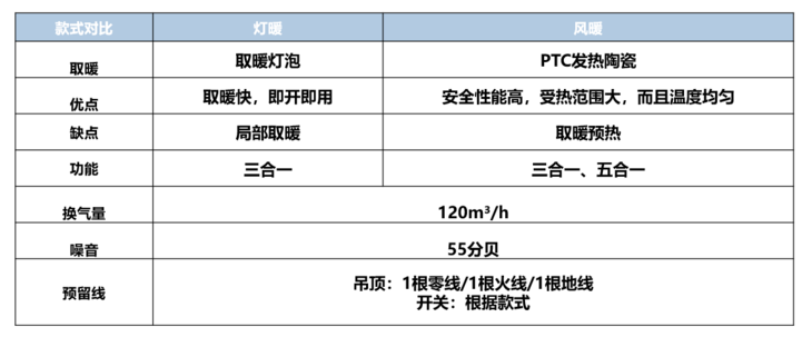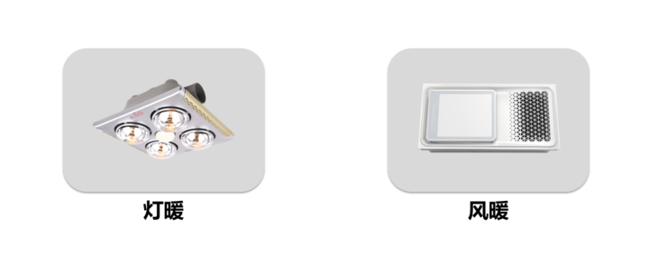 常见的浴霸有风暖加热、灯暖加热两种,风暖加热一般为PTC陶瓷发热模块进行发热,由内部的电机带动风轮吹出暖风,热效率高,内循环均匀发热,并且更加安全高效,而灯暖浴霸一般是通过取暖灯泡进行加热,热得快,仅限局部发热,因此小欧更加推荐亲亲选购欧普风暖浴霸