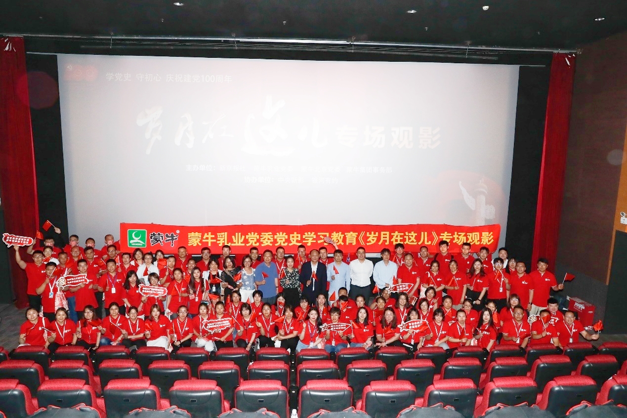 今年是中国共产党成立100周年和“十四五”开局之年,也是蒙牛集团“再创一个新蒙牛”战略的起始之年。以“学党史、悟思想、办实事、开新局”为主线,蒙牛集团开展了一系列专题学习、培训与实践活动。此次《岁月在这儿》观影,也被蒙牛集团党委视为深入学习党史、凝聚改革发展力量的一项重要内容。