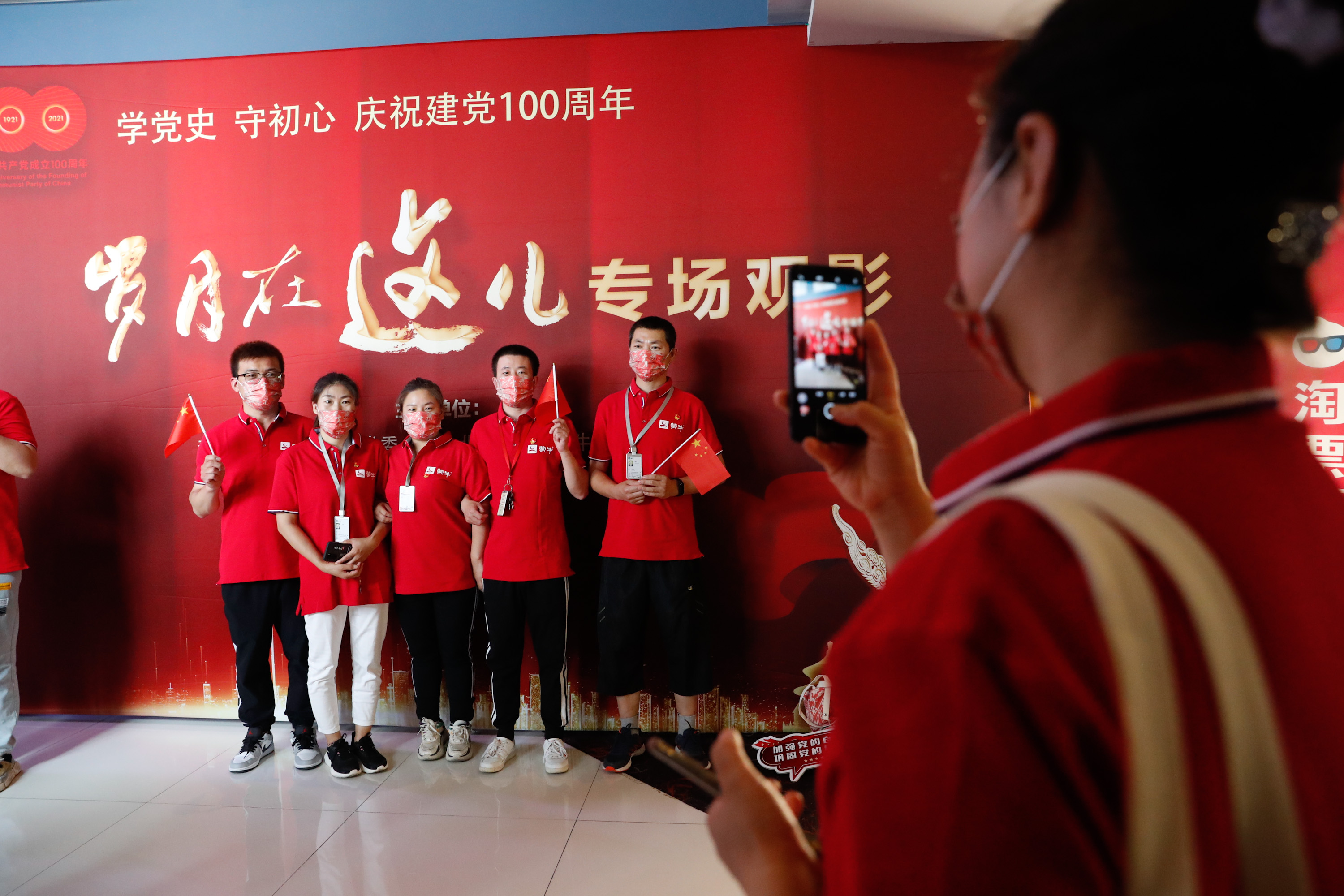 6月11日,《岁月在这儿》蒙牛专场观影,蒙牛员工拍照留念。