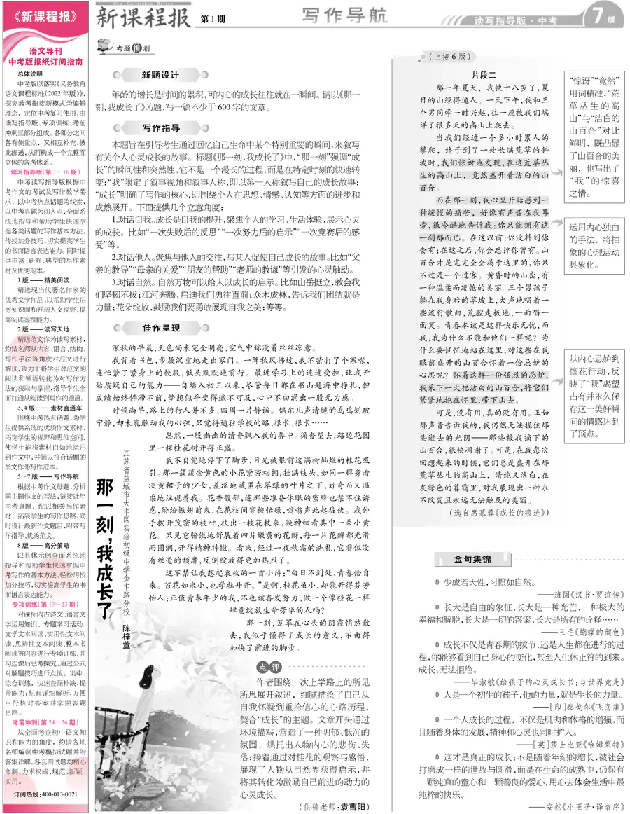 初中语文样报 中考 读写指导版 第1期