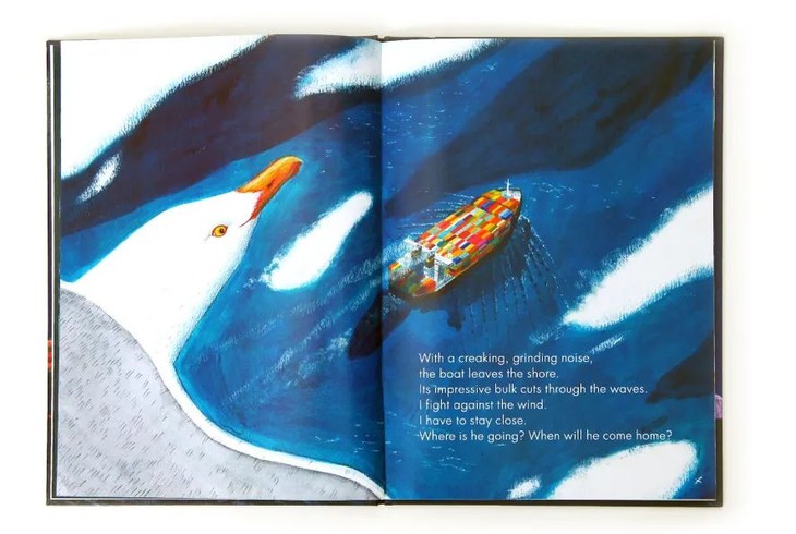 这本书的字里行间,都可以感受到孩子以爸爸为傲的情感。爸爸就像一位超级英雄,和他的巨轮拍档一起走遍天涯海角,踏浪而去,乘风归来。