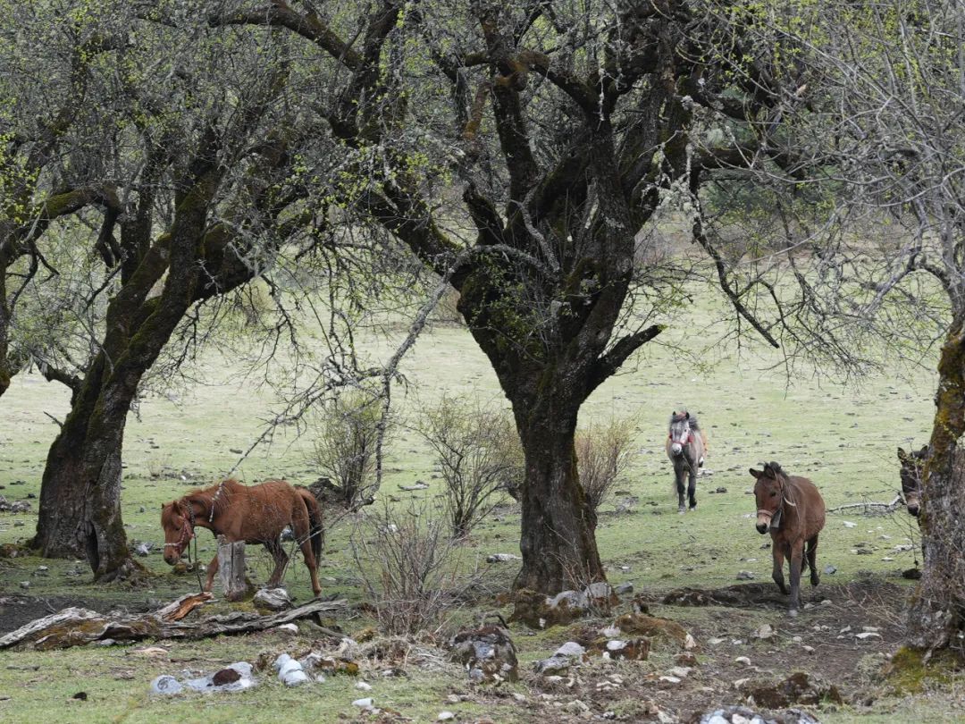 4天的行程我们幸运的见到了夏季牧场,枝桠发生的新芽,草地长满的小花,几匹马悠哉吃草,一切生机盎然。