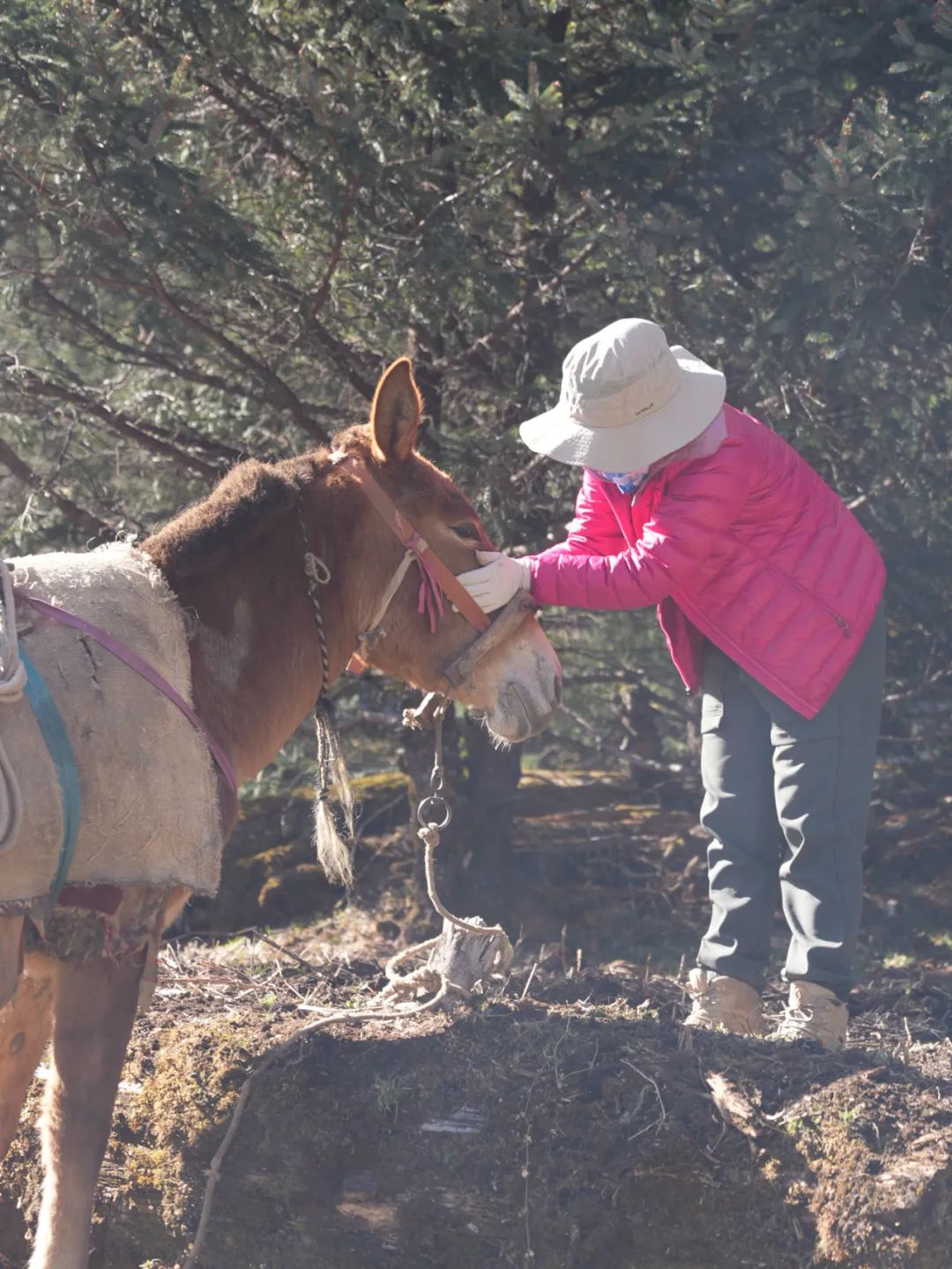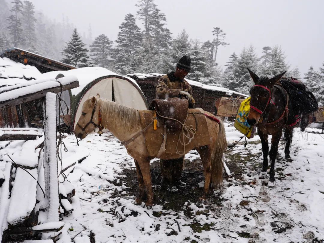 在路上我们遇到一位重装独行的女生,想跟我们的节奏一起上到垭口。向导马上劝返:“马上就要变天了,我们的线路不同,而且是轻装,已经有马帮先行到营地扎好帐篷做好晚饭的。你到了垭口还要原路下撤,到时候我们分路走,迷路的风险非常大。”