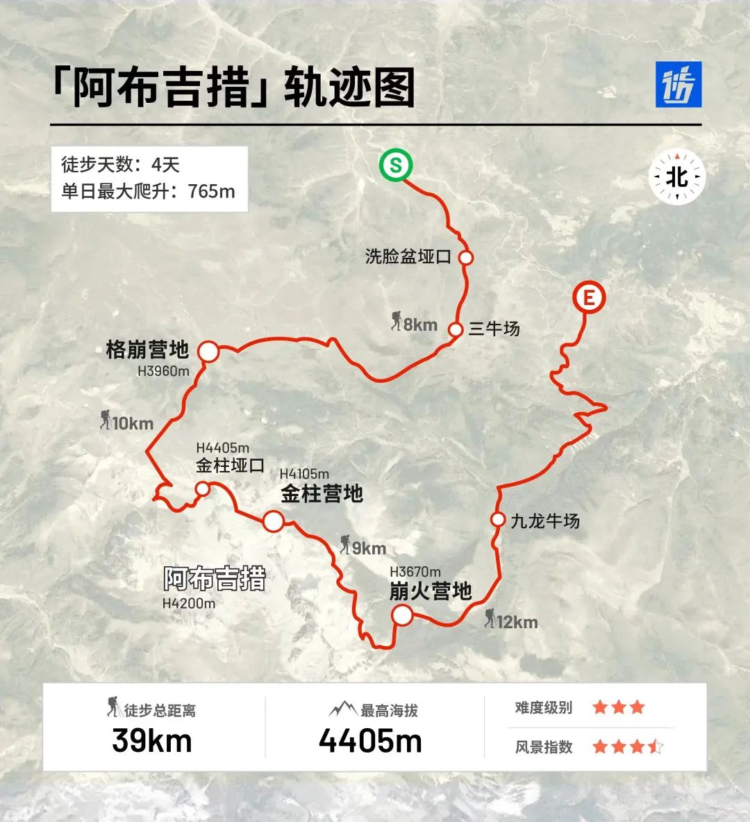 一旦某户外条路线横跨“两圈”,被轻敌就是它逃不掉的命运。至于这「失联的八小时」是治愈还是致郁,那要看老天爷赏不赏脸。毕竟本人在户外也小小摸爬过两年,走完阿布吉措还是要转身向大地磕三个响头,以谢“不杀之恩”。入门线路暗藏顶级风险