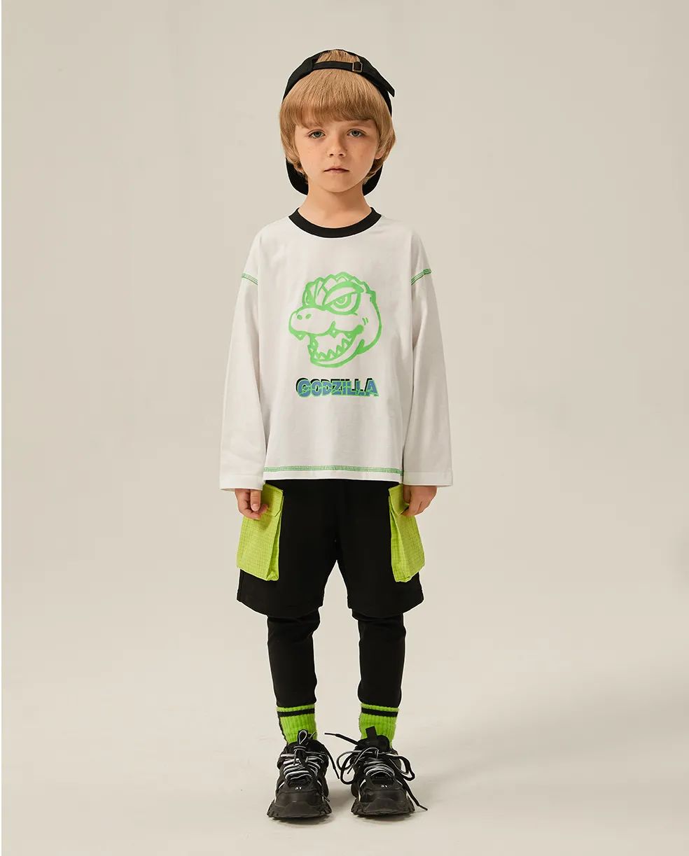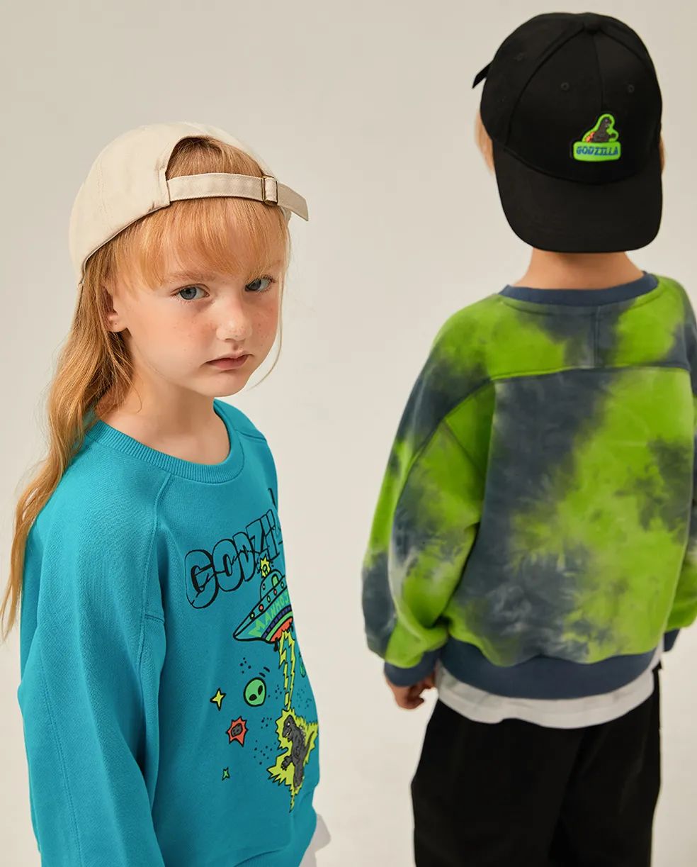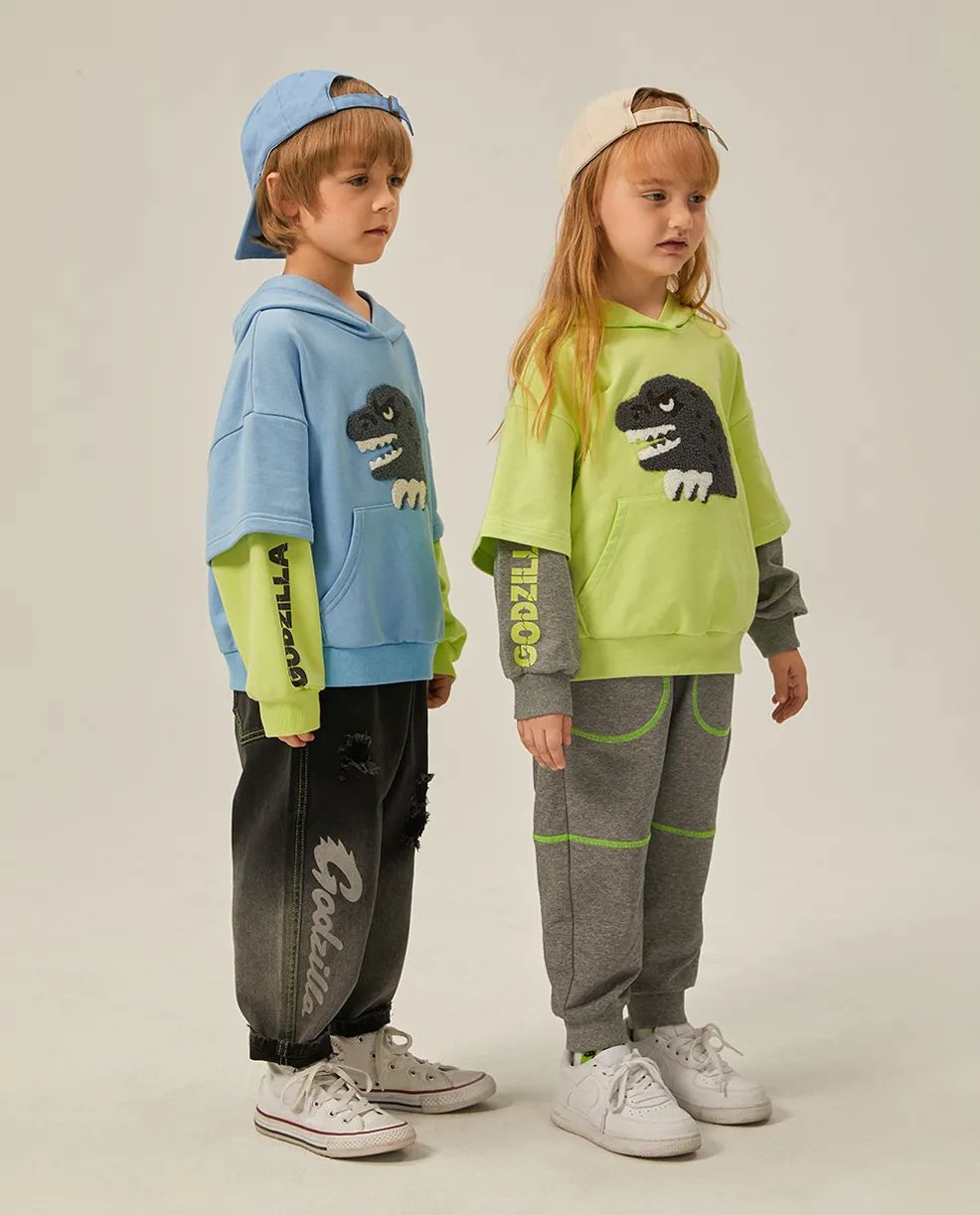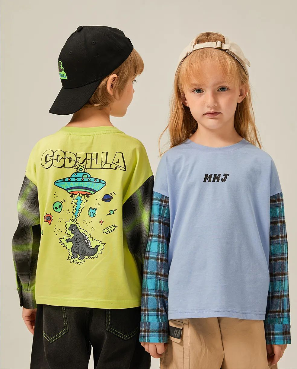 除了高品质童装的选材做工之外,设计感也是长在了摩登家庭的审美点上!跟哥斯拉联名的复古设计,帅的一批!
