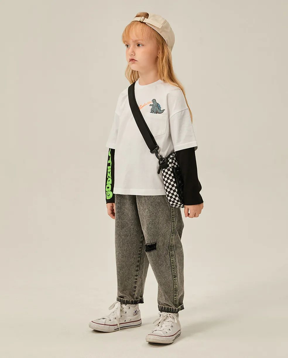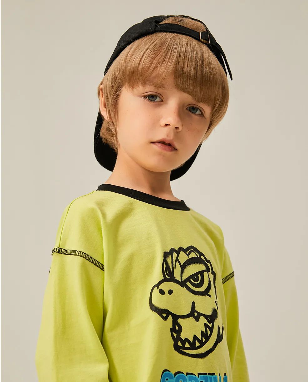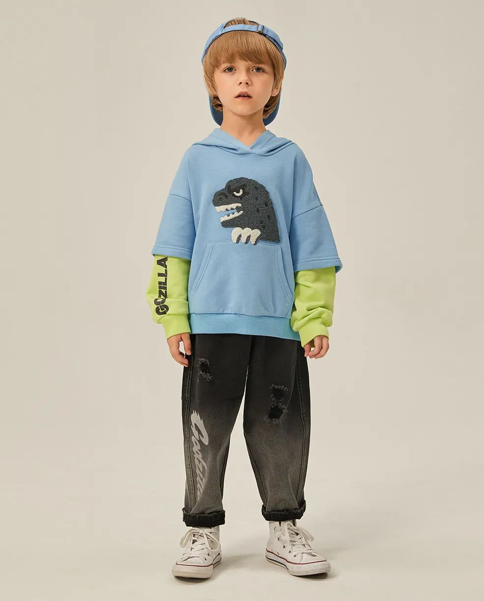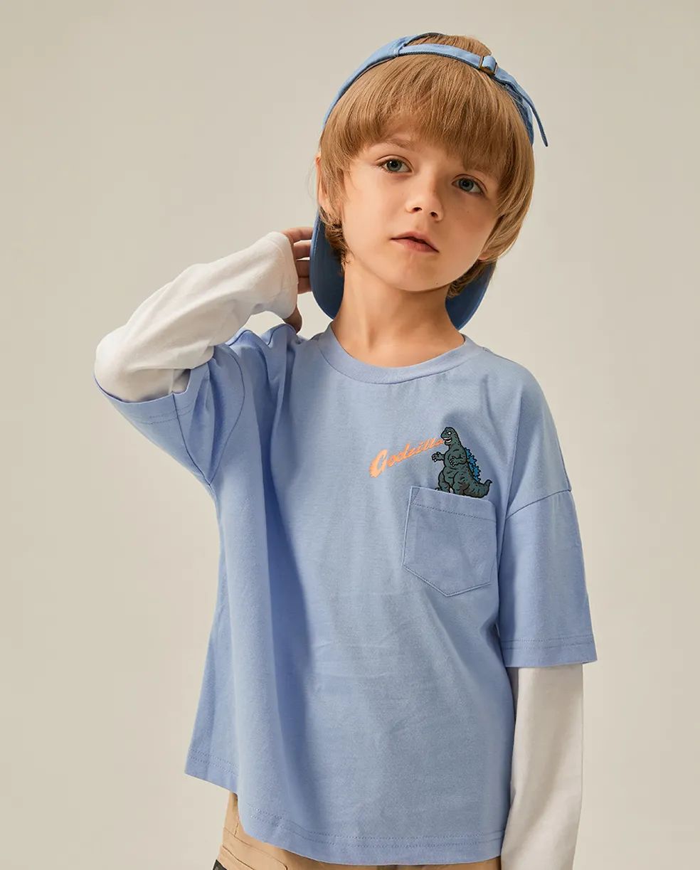除了高品质童装的选材做工之外,设计感也是长在了摩登家庭的审美点上!跟哥斯拉联名的复古设计,帅的一批!