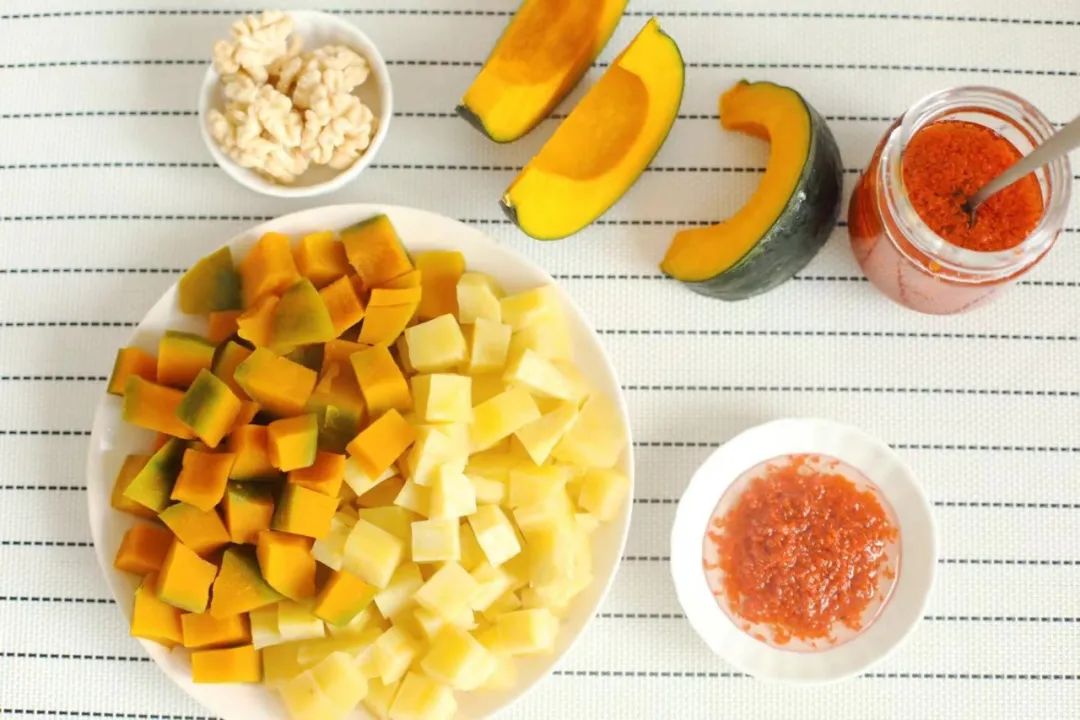 “秋天到,南瓜俏”,南瓜在这时候的好,就在于性温而不热,就算单独吃,也不会吃出内热。宝宝本来就干,再一热,就更难受了。