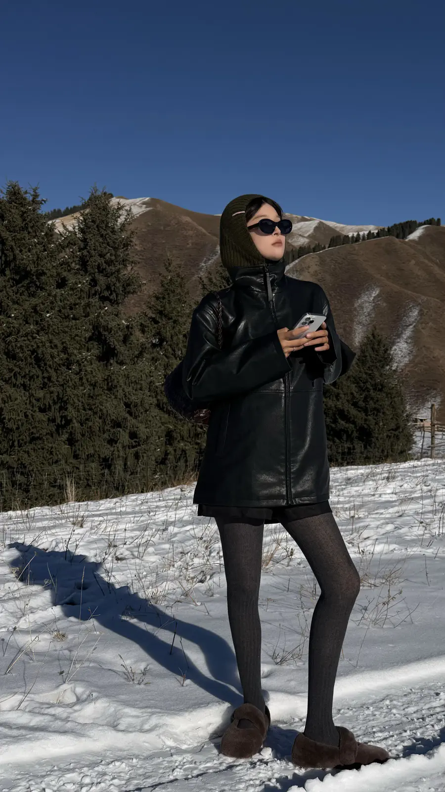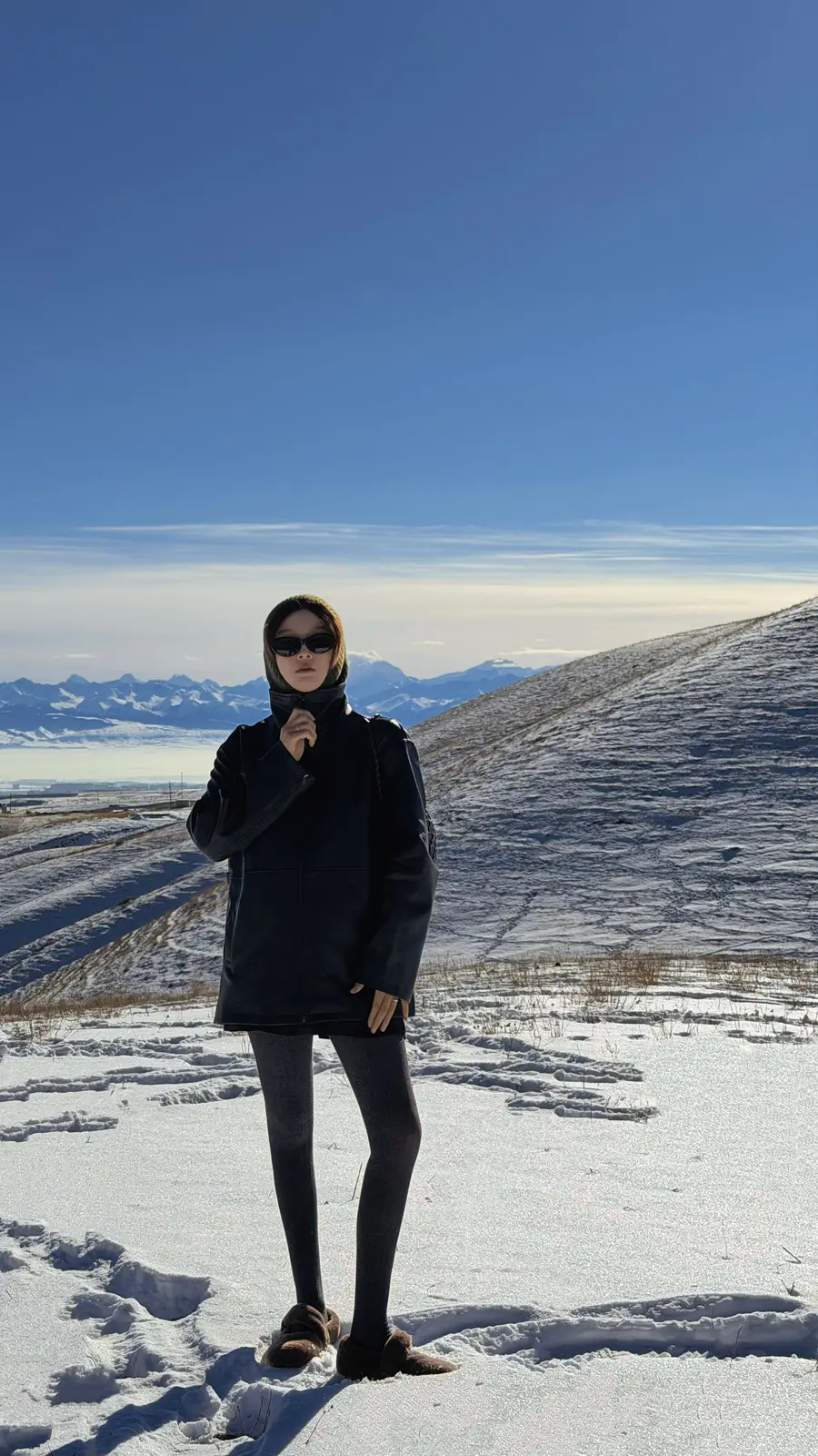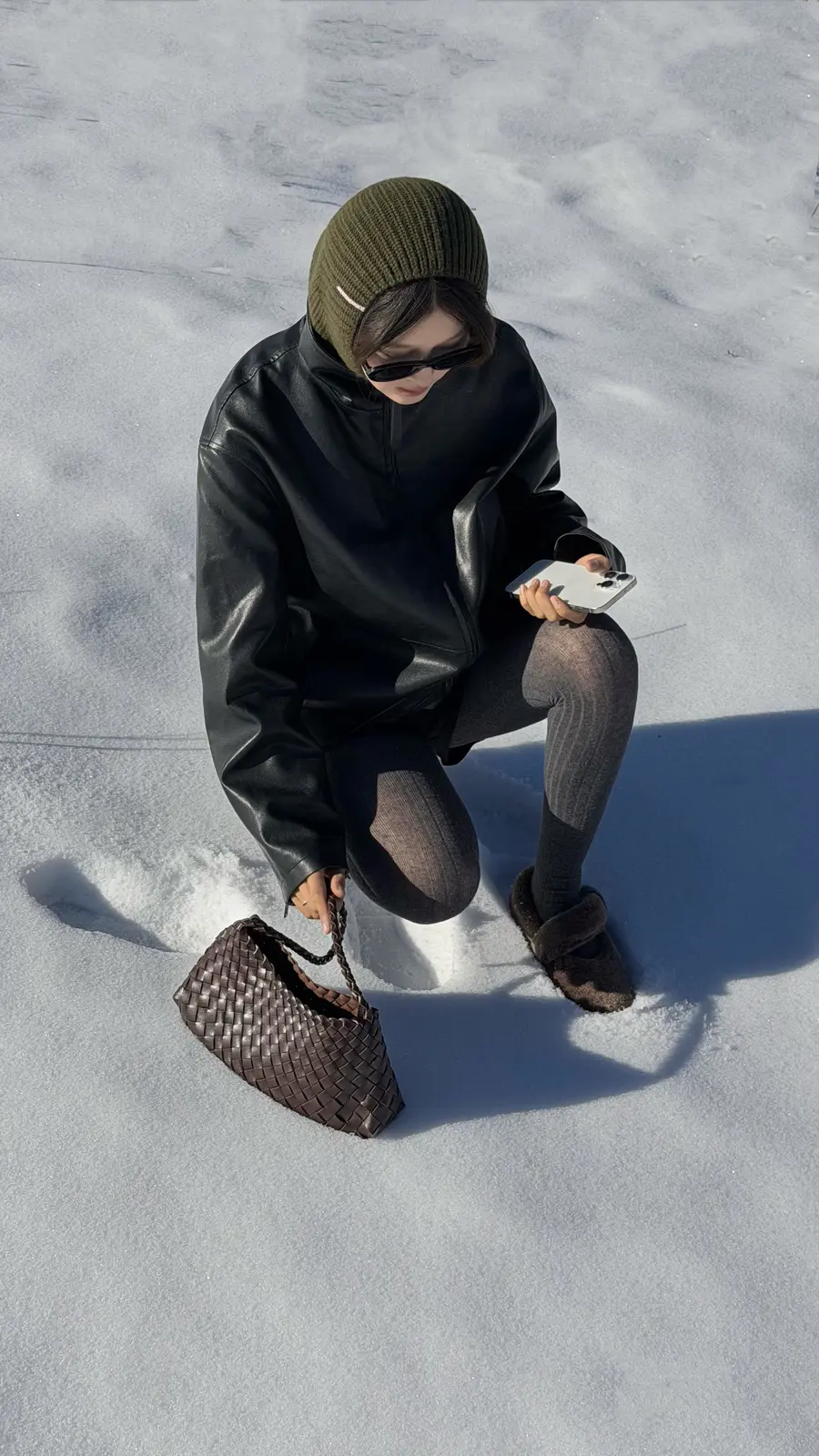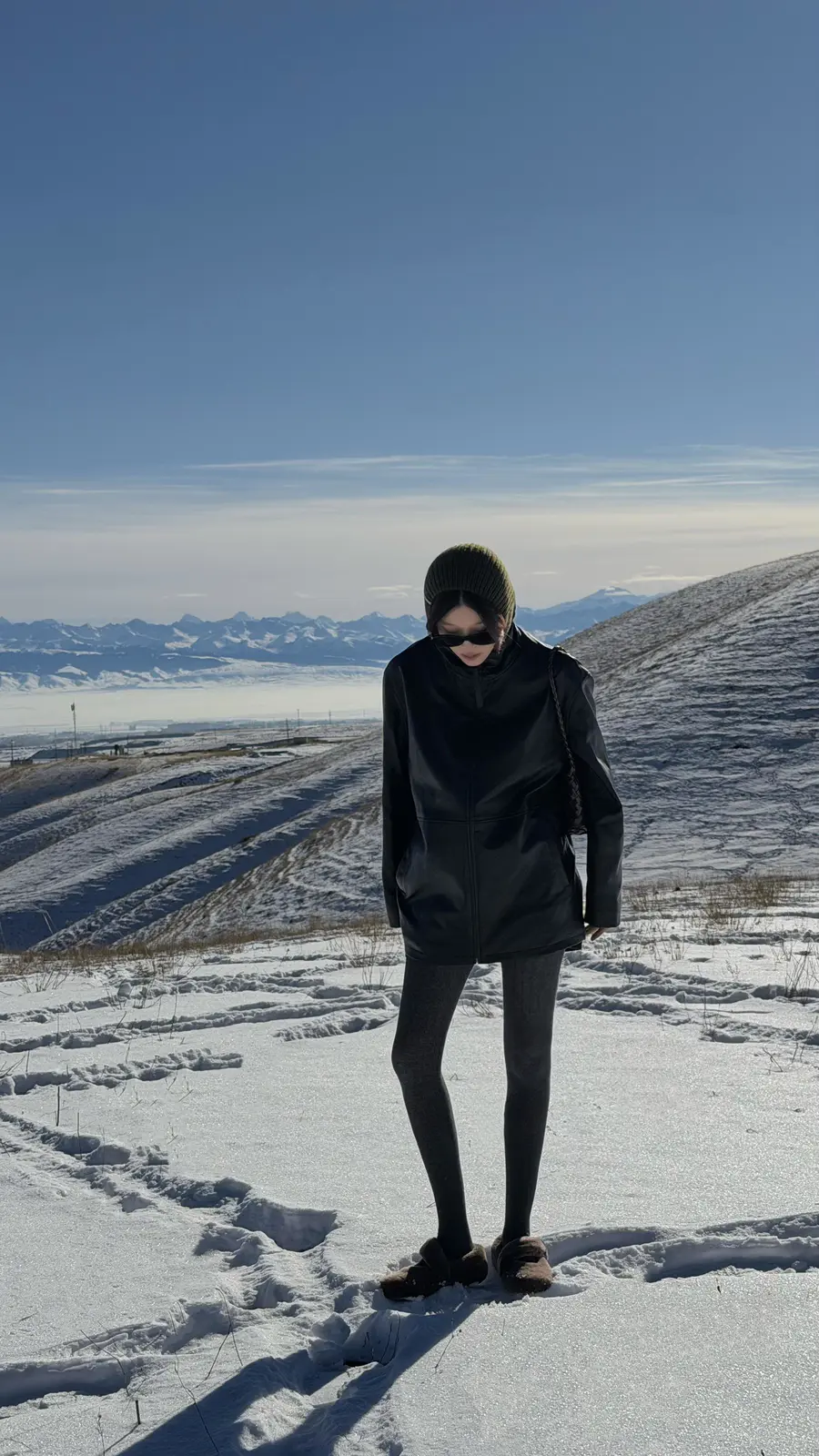 新品上身 | 皮衣+护耳帽雪地封神!雪地夕阳闪成大片~📷