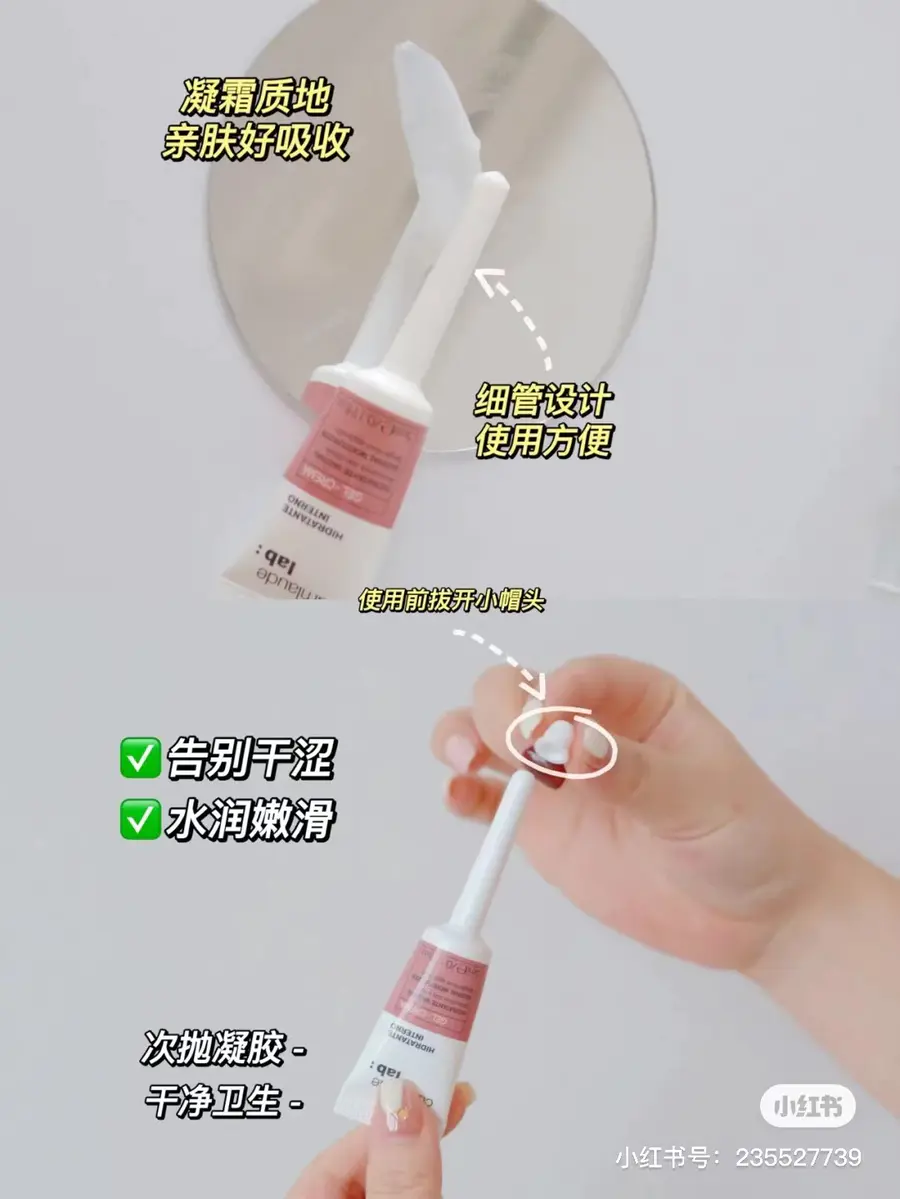 有些私密凝胶是那种水水的质感,但这款玻尿酸凝胶不一样,是半透明的凝霜质地,它有一定的粘稠度,可以更好的停留在体内,不会滴漏出来,吸收力比那种看起来很水润的凝胶更好!