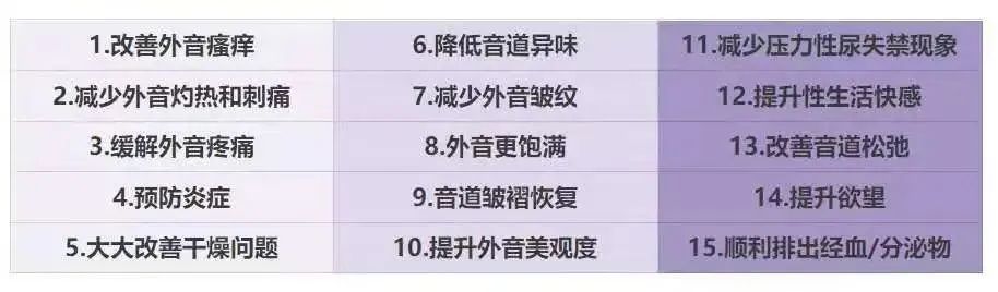 使私密重现弹润,紧致,告别松弛,恢复音道自然健康褶皱,自然蠕动排出分泌物、经血。