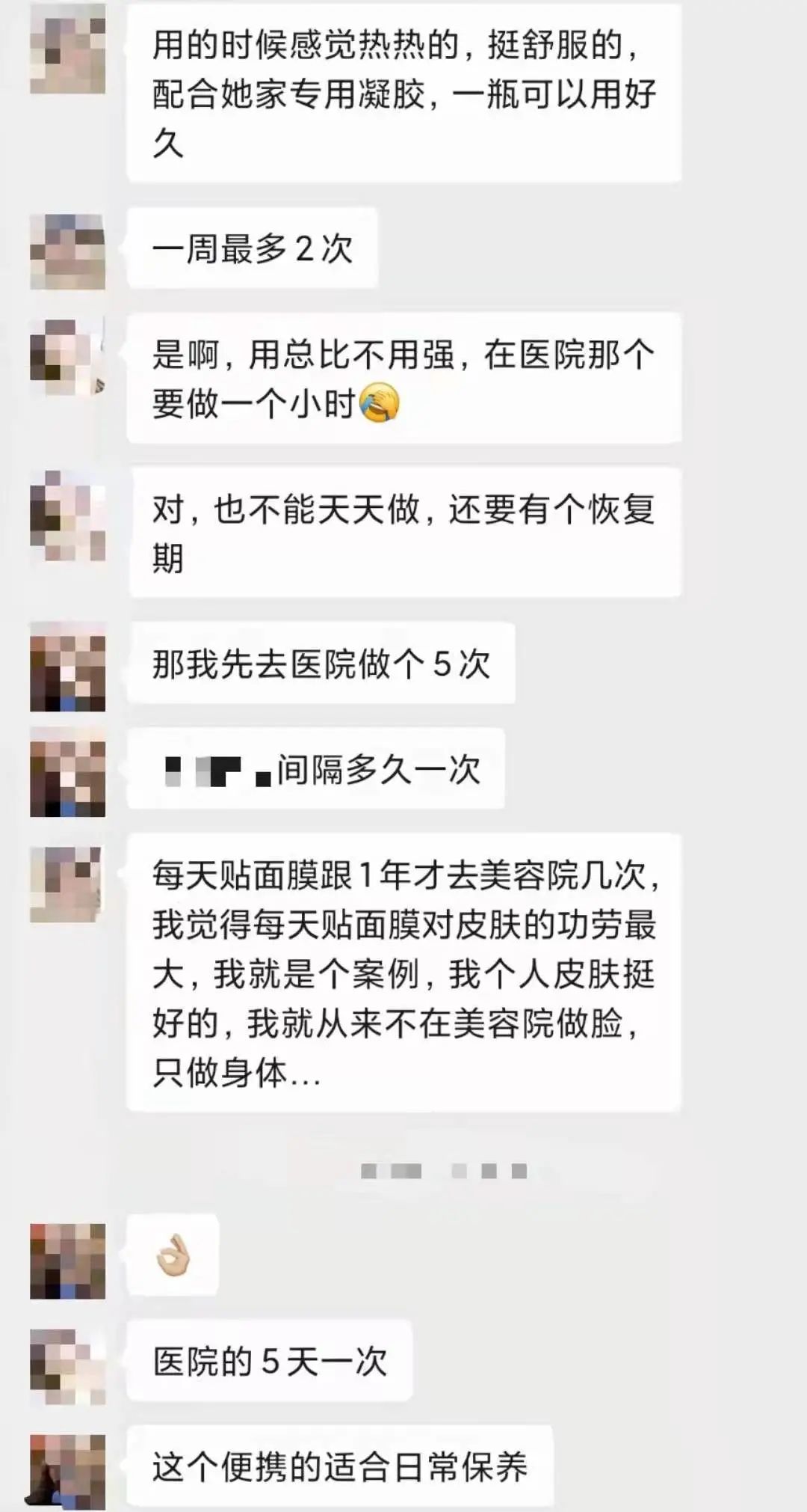 同时群里也有姐妹提到,自己去美容院的时候,做了不知道什么“检查”,然后就被告知下面长皱纹了,需要办几万块的疗程才能恢复。