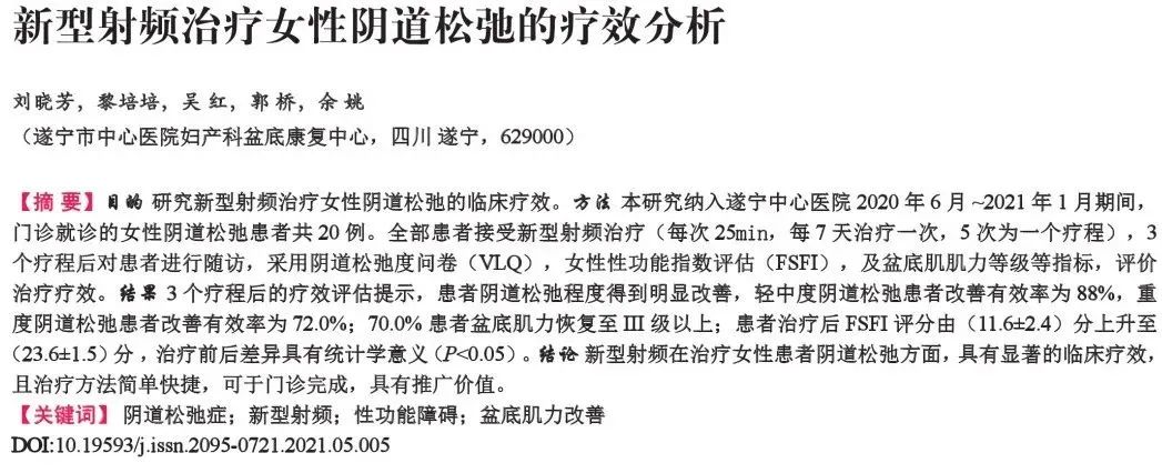 目前临床证据表示,射频技术与电刺激这两个技术,对女性外音音道萎缩、松弛等问题,有显著疗效。