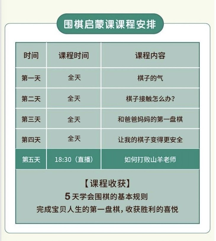 目前还处于疫情期间,为了让小朋友们在家里体验围棋更加方便,爱棋道推出了本次19元的秒杀启蒙课活动。家长们可以利用这次机会让孩子体验一下围棋这种游戏