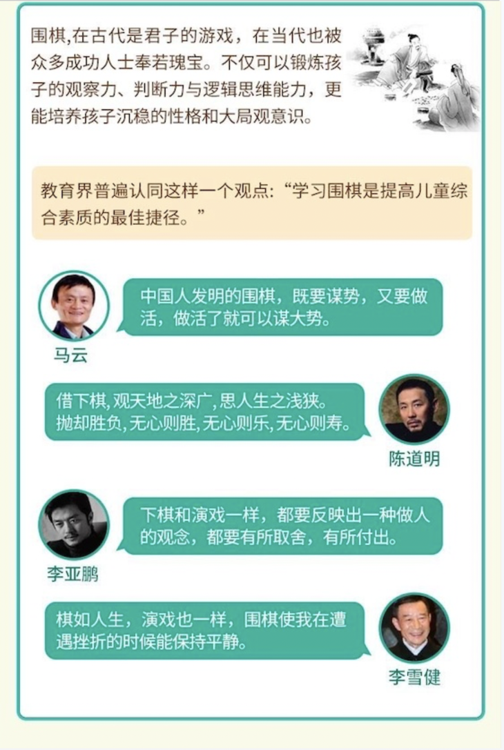 比如养成自控的能力、坚韧不拔的品格、积极解决问题的思考方式等,这些都比学习本身更为重要。而围棋就是一个极佳的选择。