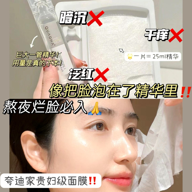 大家好,今天要和大家聊聊一款“面膜界的黑科技”——【夸迪鲜注面膜】!如果你正在为换季敏感、熬夜烂脸、干纹细纹而苦恼,那么这款面膜可能就是你的救星!来吧,跟我一起深挖它的秘密。