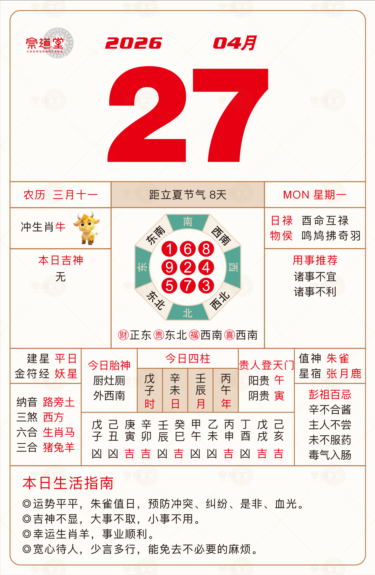 2026年4月28日 农历三月十二 壬申日 冲虎