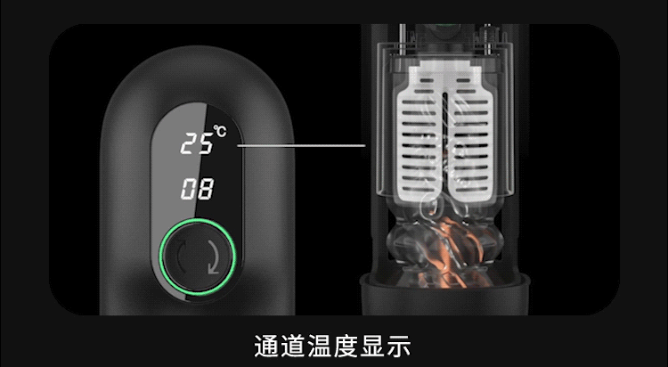 说回体验,使用前按一下加热钮,给底座接上电源后开启加热模式。 等个10分钟整个通道就暖洋洋的,最高可达到42°,比真人还高一点。 进去之后,怎么说,自己的小兄弟真的算是重新体验了一把什么叫「如沐春风」,什么叫回到「快乐老家」。 不过,这里也要提醒一下,使用加热功能超过15分钟的话,使用前也要用手测试一下内胆温度,合适再使用哦。 第二个亮点是,多种律动模式。