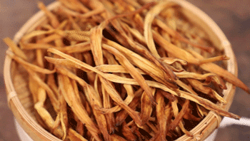 晒干的黄花菜中的糖份沉淀,中间金黄、两端颜色变成黑褐色,虽然不好看,但这恰恰是人工晾晒的标志。