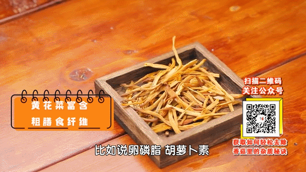 ①黄花菜富含丰富的卵磷脂,被公认为“健脑菜”,尤其适合工作压力大的上班族、中老年朋友和孩子食用。