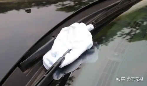 当你竖起「雨刮」后,一定要注意在玻璃和「雨刮臂」之间垫上一块毛巾或厚纸板,避免「雨刮臂」回弹敲在玻璃上,要知道「雨刮臂」的顶端也是金属的,敲一下,可谓是『人间悲剧』。