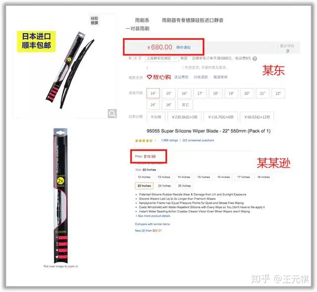 关键的关键还是:太贵!若是要买一副有品质保障的正品「硅胶雨刮」,其价格如上图所示,掐指一算,这价格可以买好几副知名品牌的「橡胶雨刮」,更别说10元、20元就能搞定的「橡胶胶条」了……