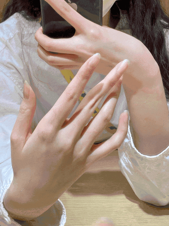 之前指尖位置都是死皮,现在手部位置喝饱水,把老茧自然新陈代谢掉了,嫩得即便不装饰,也是美美的玉手~