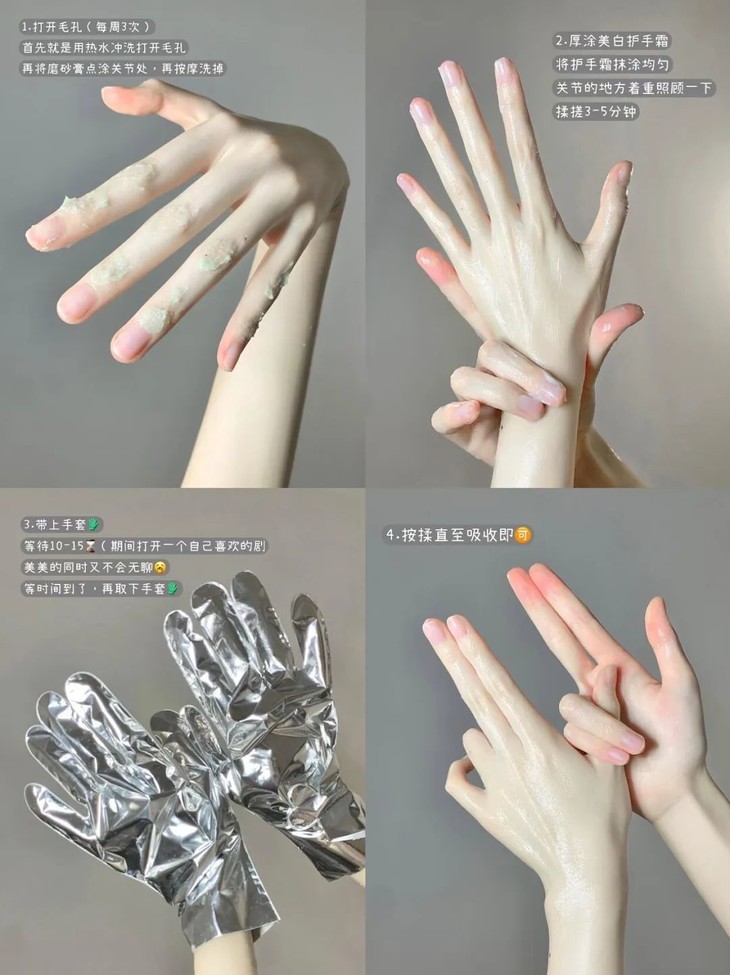 我一般会在关节处多厚涂一会儿,每次做完双手巨嫩滑,滑溜溜的自己都忍不住摸,嘿嘿~