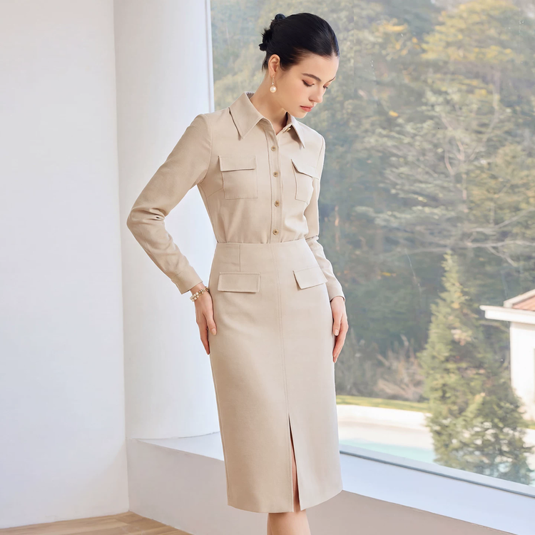 行走间裙摆轻扬,既保持了职场的得体,