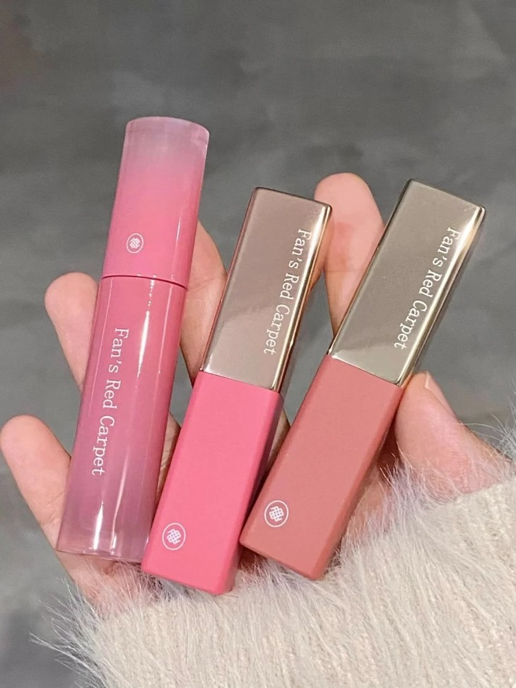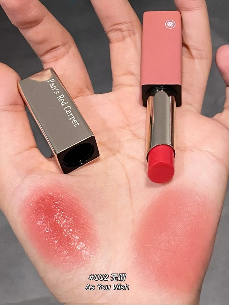FanBeauty是真听劝啊!!! 限定的口红礼盒了!!! 怎么冰姐人这么美 出的口红更美啊 真的可以永远相信范美丽的审美😍 这三支颜色和质地都好拿捏我! 调色好适合春天🌸 🍧#002无谓 As You Wish 柔缎唇膏 清透水光西柚果冻色 灵动又活泼