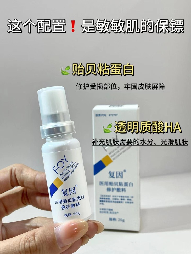 是从海洋贻贝的足丝腺中提取出的成分,加速肌肤受损部位的修护,喷在屏障受损处,可以形成生物膜,多方面的去修护和牢固咱的皮肤屏障