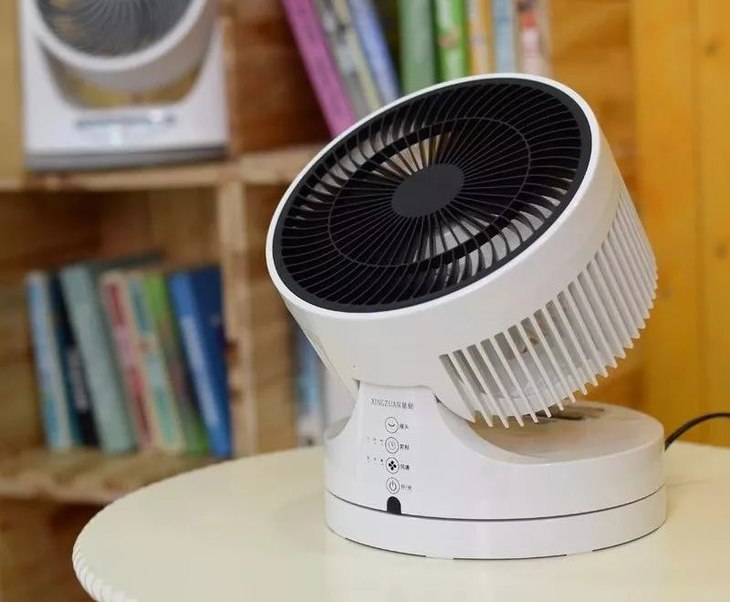 问他是不是买了什么黑科技空调,结果他笑笑地指了指桌上一台安安静静的“电风扇”,说:“喏,就它。”