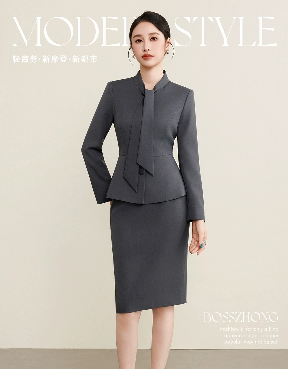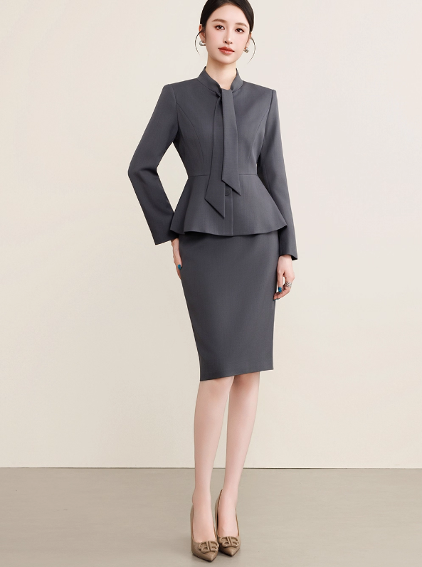 立领挺括,飘带轻柔,刚与柔在这里完美交融。面料质感上乘,细腻且有光泽,每一处缝线都诉说着匠心