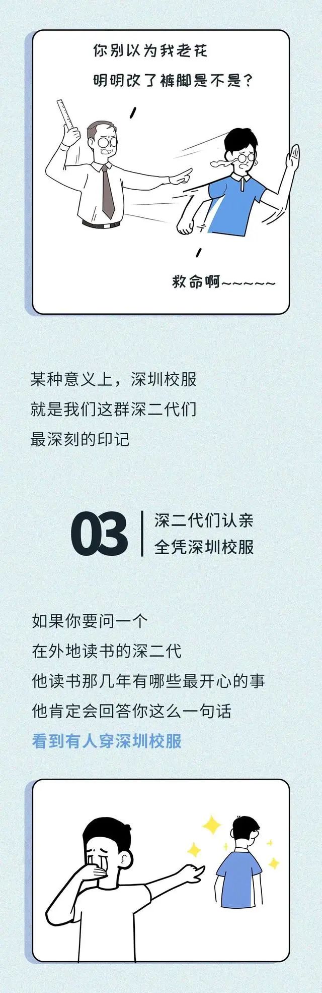 但我想说的,深圳校服,早已成为了深圳这座城市的一枚特殊的符号。它不仅仅是一件上衣,一条裤子,它更是众多深圳学子,对于逝去的中学时代,一种怀念。