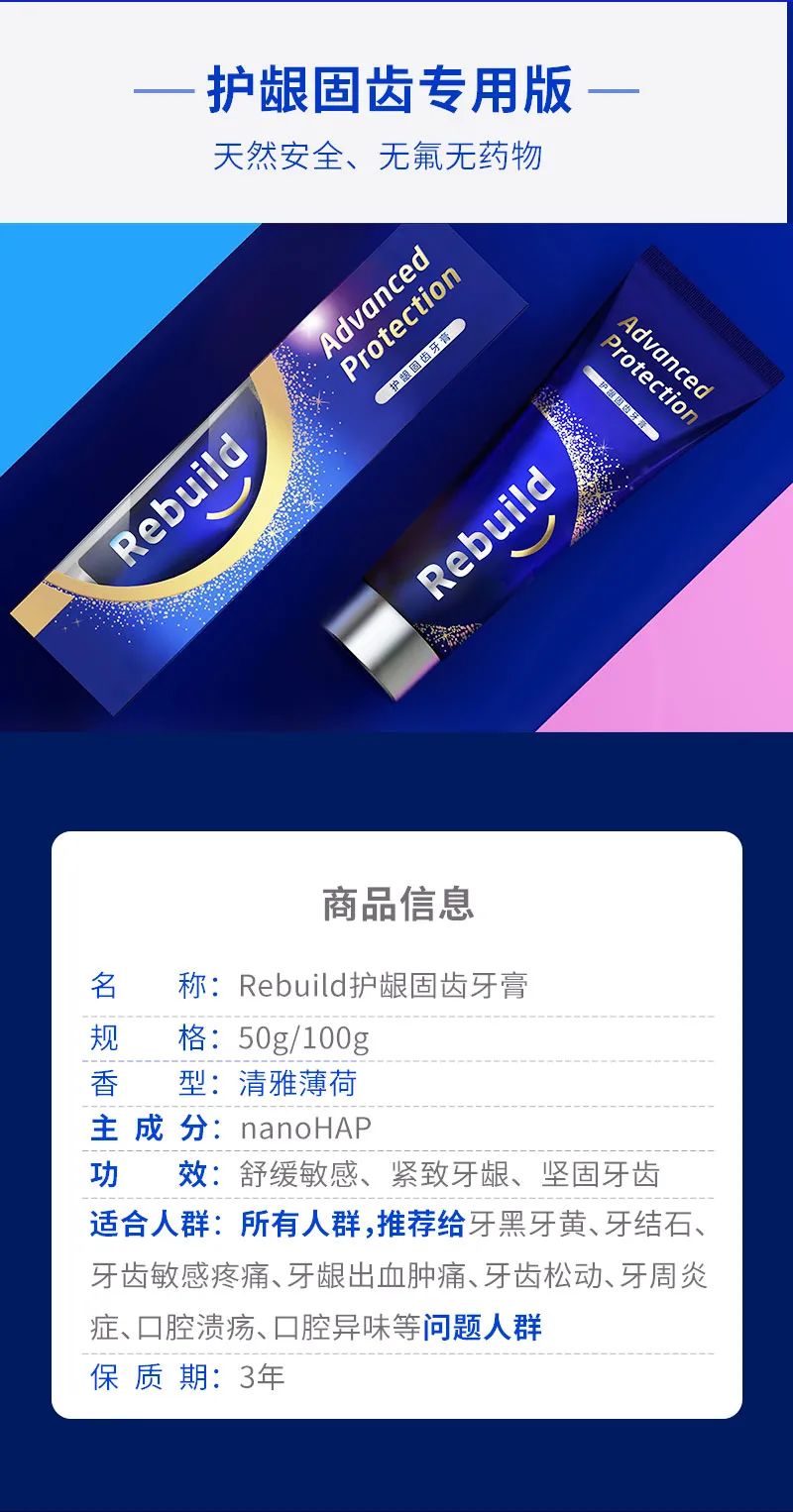 因此,小编强烈建议,在决定拔牙前,花几十元试一试诺必达Rebuild护龈固齿牙膏,用一两星期之后再决定要不要拔牙也不迟啊!毕竟真牙拔掉之后是长不回来的。