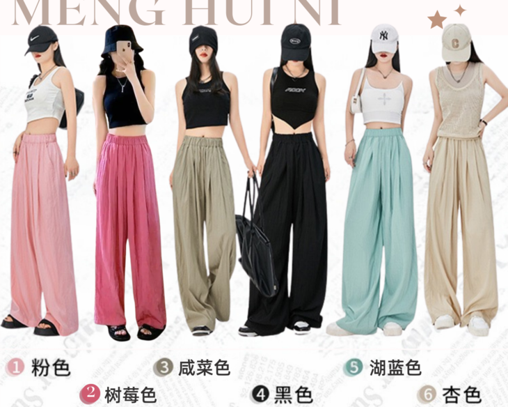 各种风格的阔腿裤:西装裤,丝绒裤,牛仔裤···