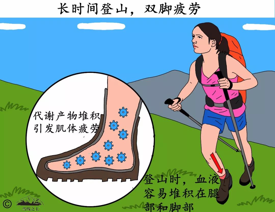 经过一天的徒步回到营地时,双脚常常会感觉沉重、疲惫,这是因为在行走的过程中,血液会更多的流向足部,同时足部沉积一些疲劳物质。