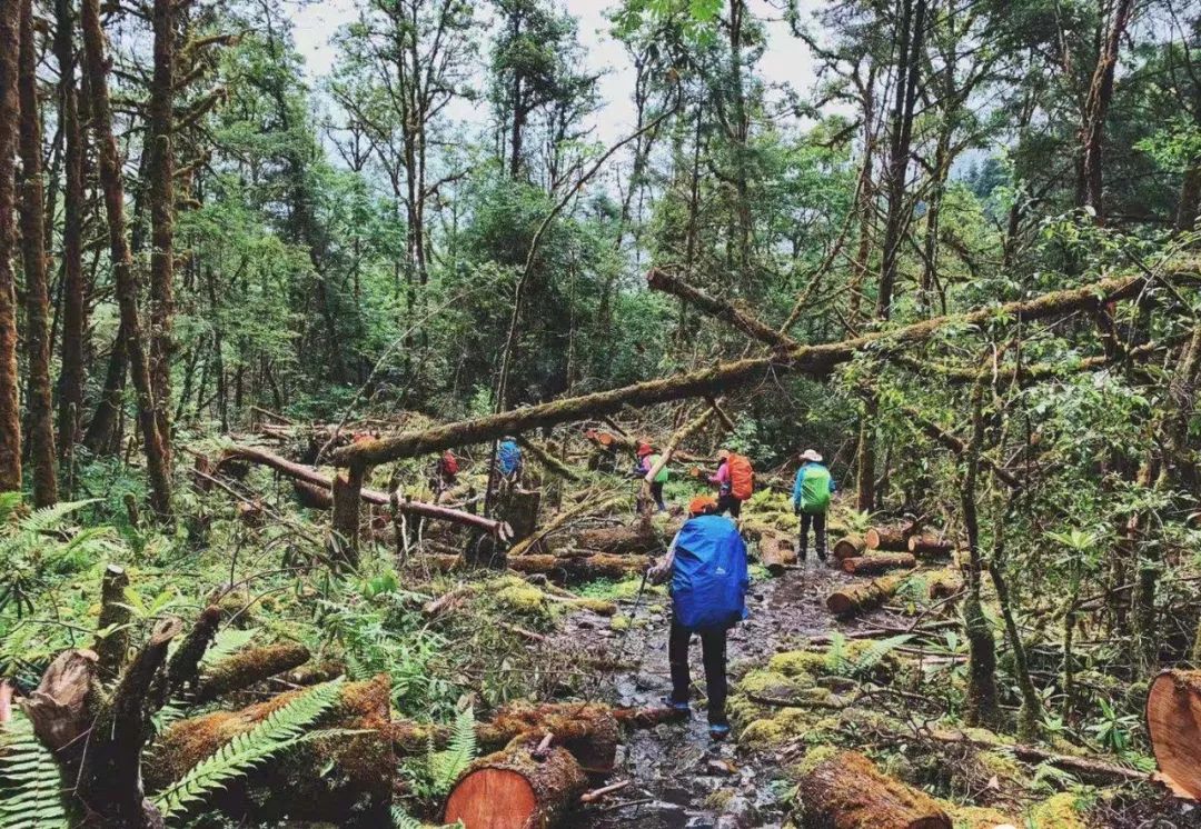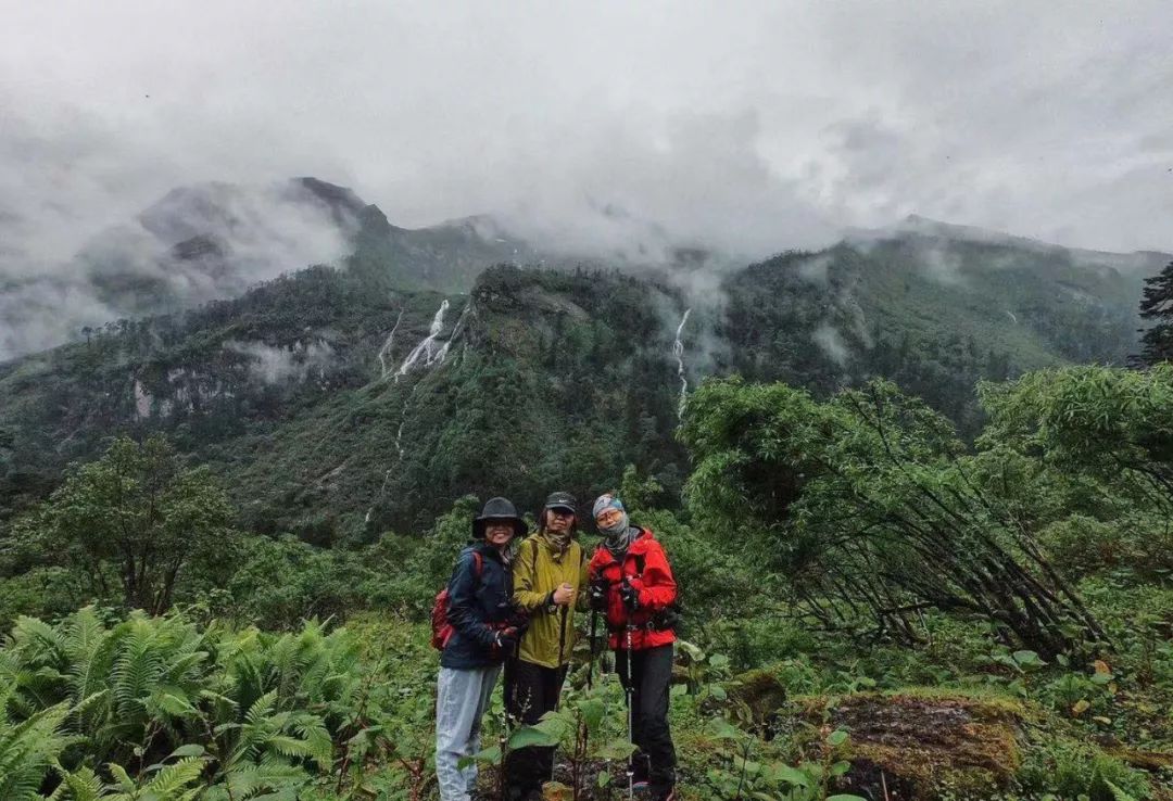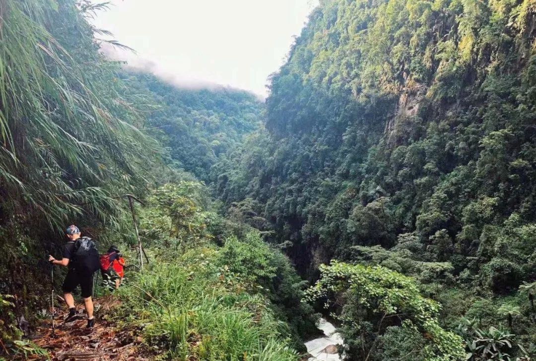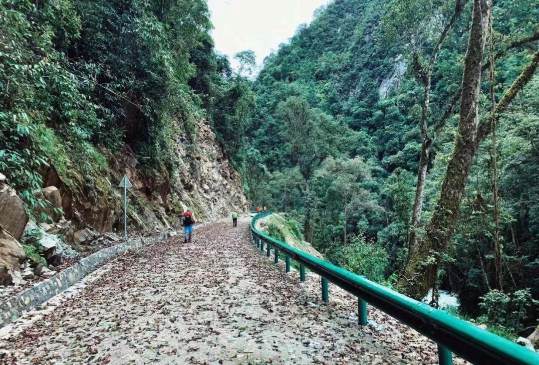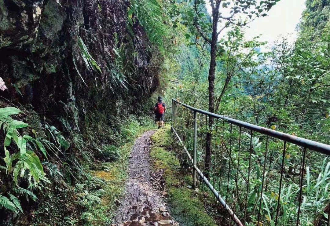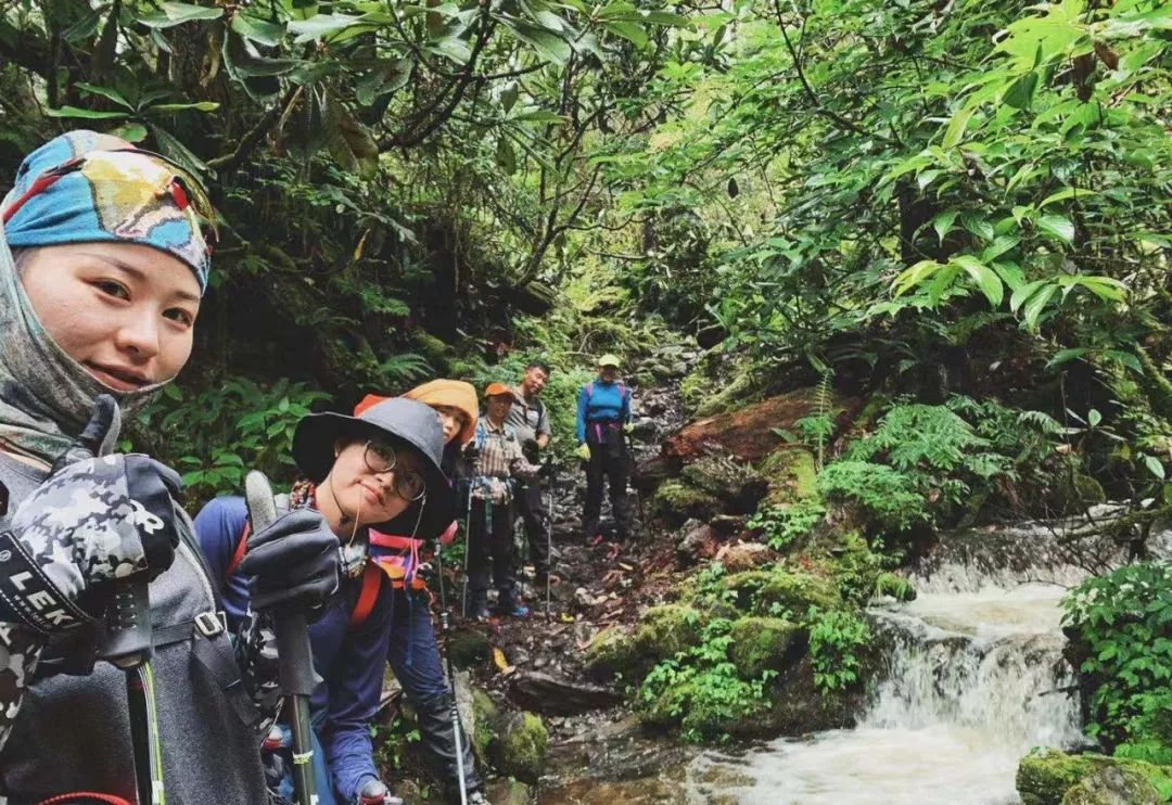 一直在下降,再也无法爬升。老虎口相对于蚂蝗确实危险了不少,左边是细雨般的瀑布从悬崖上挥洒,右边则是悬崖。路面非常湿滑,不过这里的蚂蝗貌似少了一些,所以还是放慢脚步慢慢前行。我对于大福姐镜头感十足这件事上,我给她满分。每当我拿起手机拍照时,总会抓到她各种各样的表情,不知是抢镜呢,还是担心我在后面,路难走,怕我走没了。我想是后者。毕竟磕磕绊绊这么多年了也还是有情在的。我们历时5个小时完美通过了蚂蝗区,再见,蚂蝗。再见,山路。