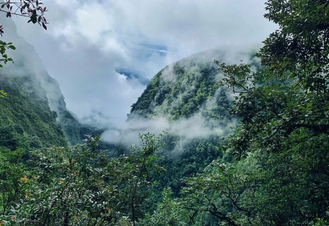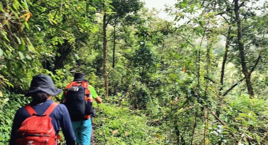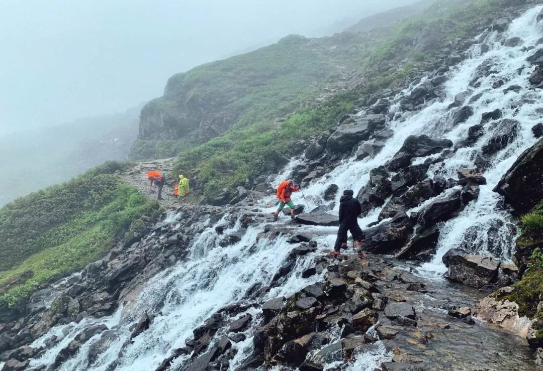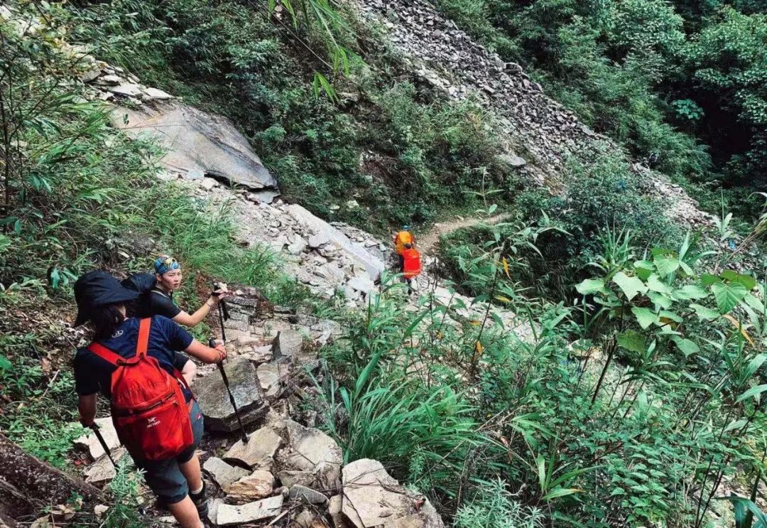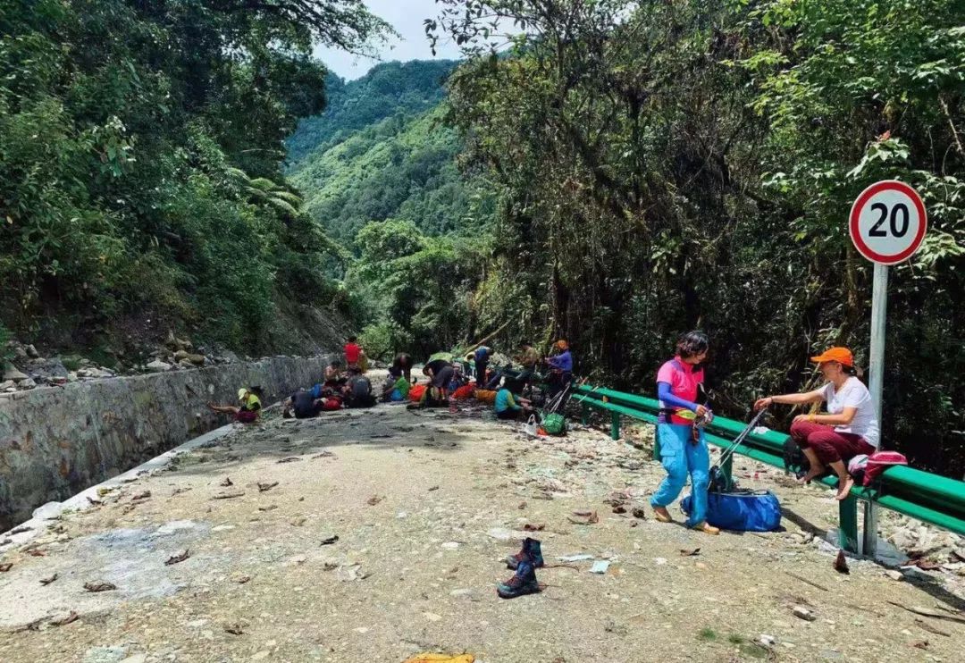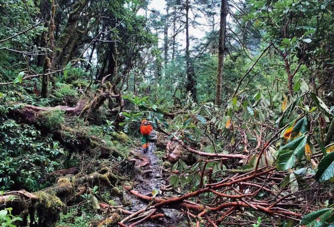 一直在下降,再也无法爬升。老虎口相对于蚂蝗确实危险了不少,左边是细雨般的瀑布从悬崖上挥洒,右边则是悬崖。路面非常湿滑,不过这里的蚂蝗貌似少了一些,所以还是放慢脚步慢慢前行。我对于大福姐镜头感十足这件事上,我给她满分。每当我拿起手机拍照时,总会抓到她各种各样的表情,不知是抢镜呢,还是担心我在后面,路难走,怕我走没了。我想是后者。毕竟磕磕绊绊这么多年了也还是有情在的。我们历时5个小时完美通过了蚂蝗区,再见,蚂蝗。再见,山路。