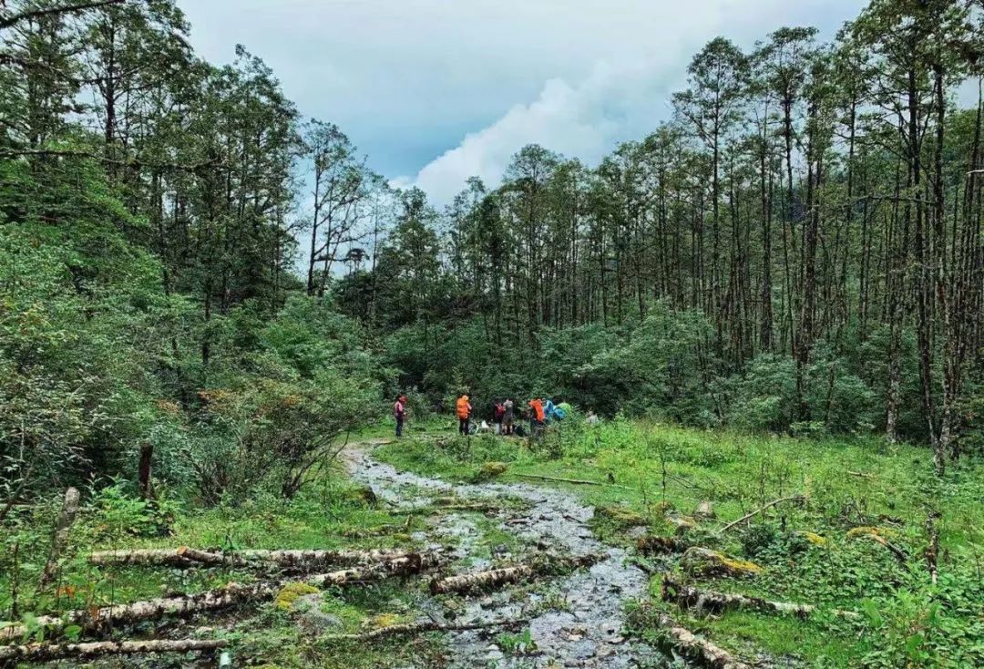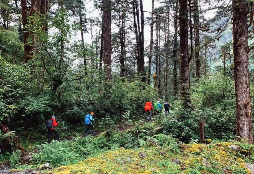 7月21日,我们一早从拉萨出发,驶向林芝。身未动心已远,尽管车子也在努力地向目的地驶去,我们还是不满足它的速度,迫不及待地想见到墨脱。拉萨到林芝段的高速公路,简直便捷加快了抵达林芝的速度。一路上,总不愿意去过多的欣赏路上的风景,只想把所有的寄托留给墨脱。存放行李过后,我们马不停蹄地前往派镇,入住兄弟客栈。这个客栈也是十年前老大和姗姗入住的客栈,不过呀物是人非,兄弟变大姐,早恋变单身。对于大姐,我很遗憾未与她合影,毕竟她引领整个派镇的时尚也曾多次走过墨脱。侃侃而谈与我们讲着墨脱上的“死与死”。尽管快进入3字头年龄的我,但是人生还有那么长,不至于留在墨脱吧,大姐!曾经四姑娘山背夫事件我就一顿恐慌,以至于好哥们也没有翻越成功的案例,又一次在咱大姐这里上演了,大姐麻烦您说话摸着良心好嘛。好在这次是跟着老大,姗姗还有夜走来的。7月22日,我们一早坐车去起始点松林口,一路下着大雨,大家心里会觉得天公不作美然而当抵达松林口时雨停了,人品爆棚每次都是这样的。 起步前,请允许我们来一张青春的合影,不过起步之后就分道扬镳了。划分成了领队,队中,收队。毋庸置疑,我就是我,那个不一样的烟火--收队。