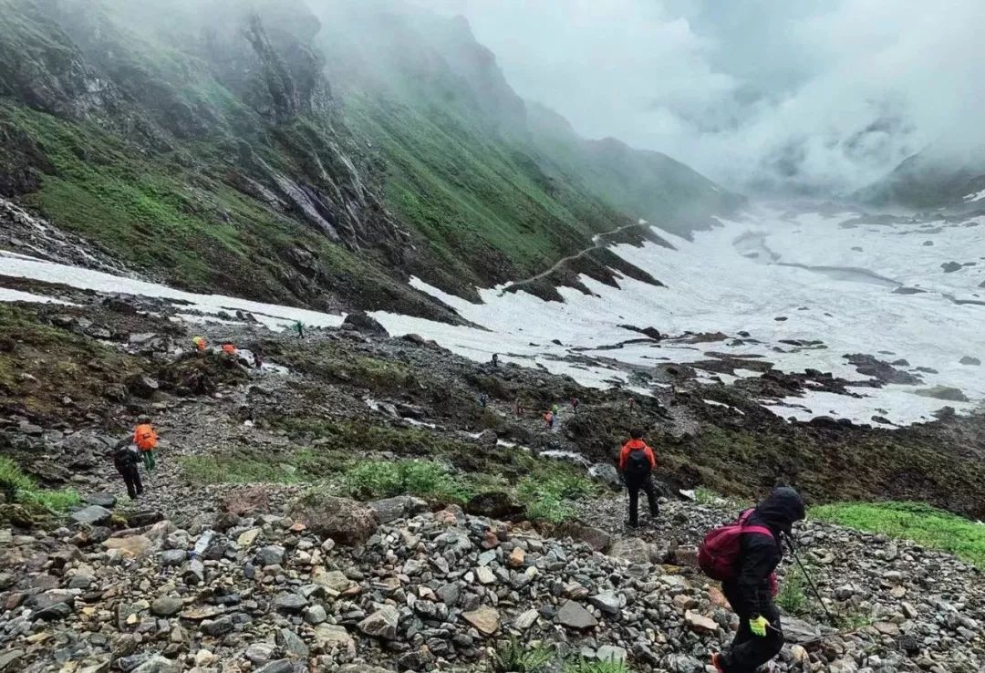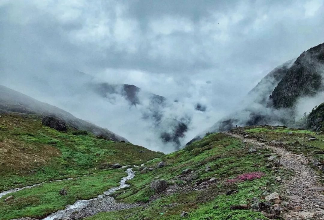 今天全程徒步13公里,中午十二点前要翻过多雄拉山口,多雄拉山口海拔4245米,一半是高山草甸一半是冰川雪山,简直人间天堂。