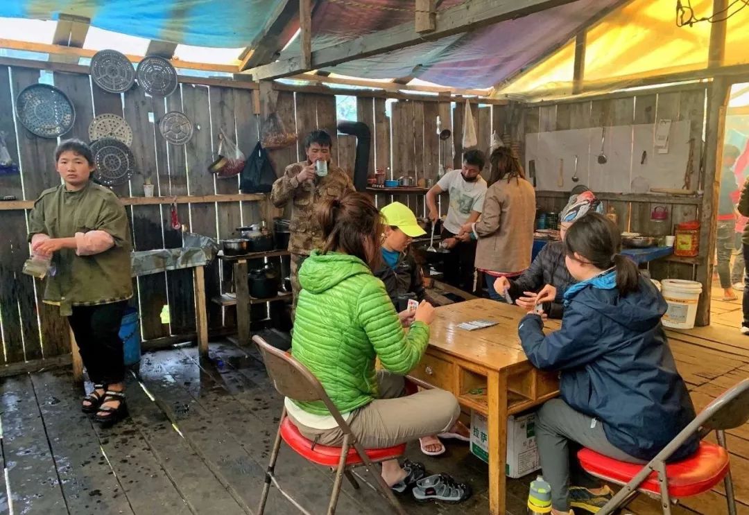 这间牧民房是现在拉格唯一一家,进入牧民房围坐在火堆旁,简直是温暖人间。门巴族的年轻人为我们准备着可口的饭菜,我们居然玩起了扑克,可还行。