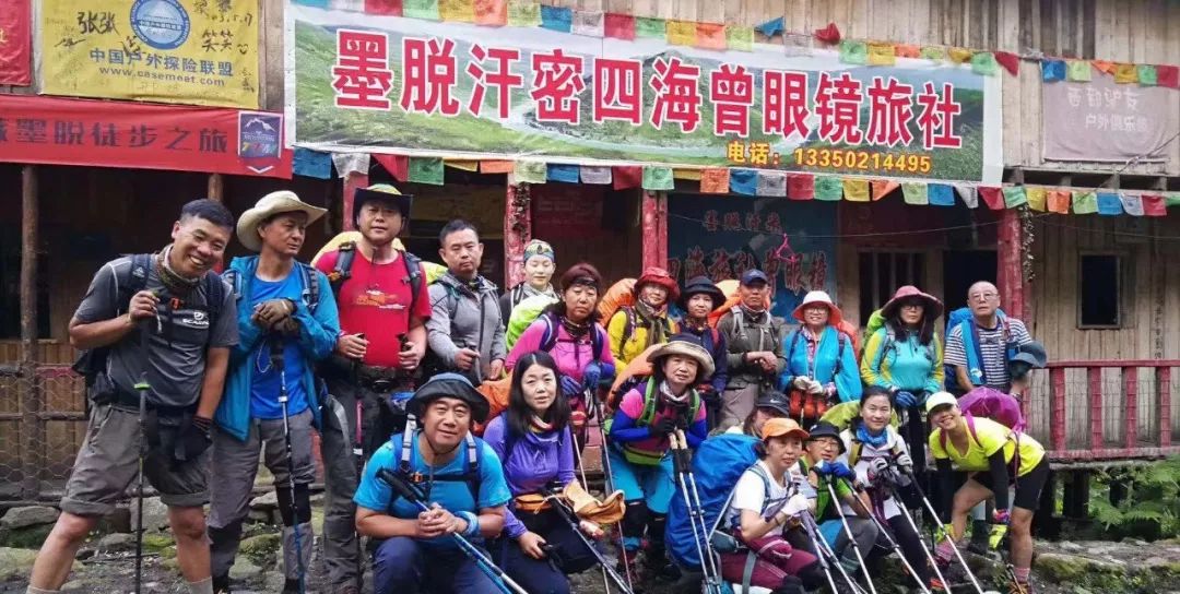 7月25日,我们今天正式进入曾眼镜所说的真正的蚂蝗区,十八公里。还有十公里的塌方区。预防蚂蝗我倒是更支持老大的做法,暴露在外。曾眼镜告诉我们拿一些盐或者在袜子口一圈抹一层盐,效果不错。在离开曾眼镜旅社前,我们进行了合影,留住着十年后我们来过的墨脱。十年前,你在;十年后,你依然在;希望下一个十年,你还在。合影里没有看到我吧,我只是适合露出我的标志。也许是因为貌美如花不宜露脸,把这样的机会留给这些美的不明显的人们吧。