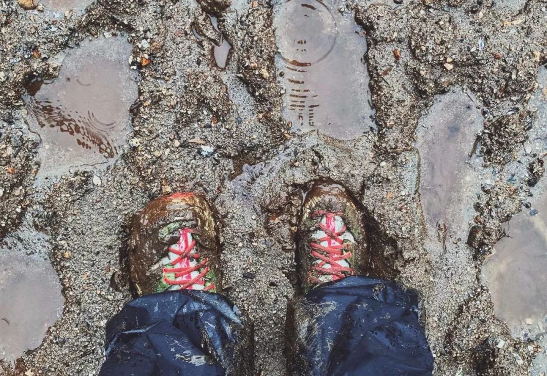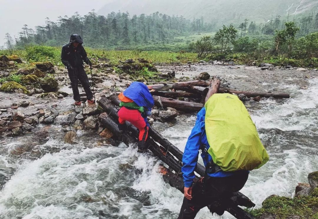 没错,从拉格出来就是一个下马威,一入泥潭深似海,我们一路入泥,一路拔腿。遇到清澈的水流,我们就很感恩戴德,毕竟可以冲冲泥,减减负啊。每次过水,老大总是身先士卒,他会去探路,会去摸底,仿佛是个特种兵呢,哇哈哈,我们经常会说“信老大得永生,一点儿没错”。每每徒步,我都会跟在老大后面,似魔鬼的步伐。
