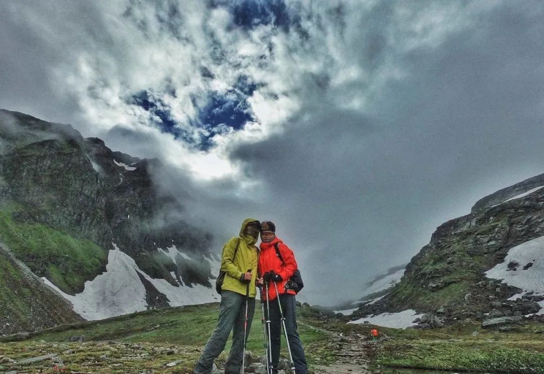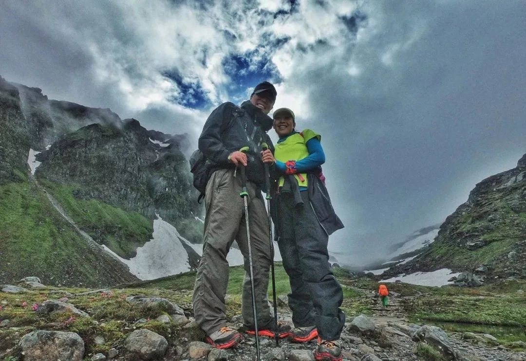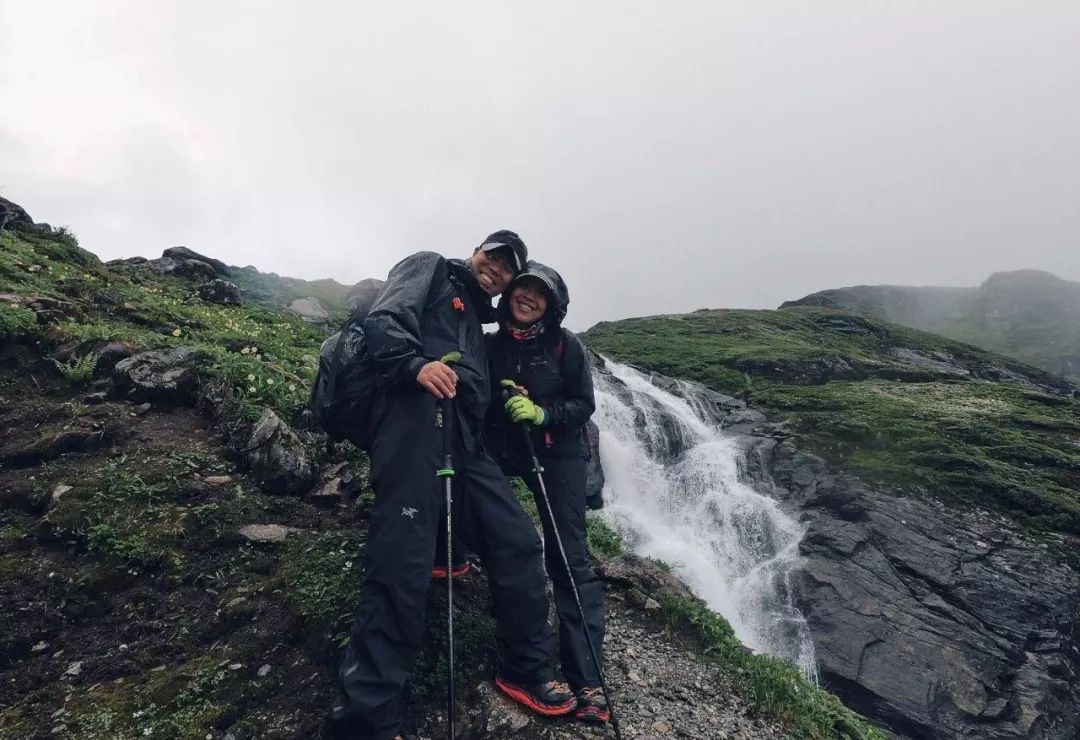 瀑布前的老夫老妻,伉俪情深,对每一位队员都关爱有加,如朋友一般少了许多功利,多了一份情义。这个队伍确实很有温暖,也许是因为领队是夫妻吗?温暖我们仅有的几只单身汪。瀑布前的单身汪,追随老大姗姗6年之久,得到的要比付出的多的多。习惯了和老大姗姗一起徒步穿越,喜欢那种简单,舒服和快乐的状态。
