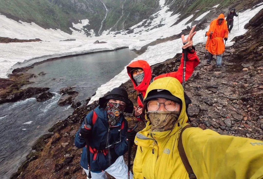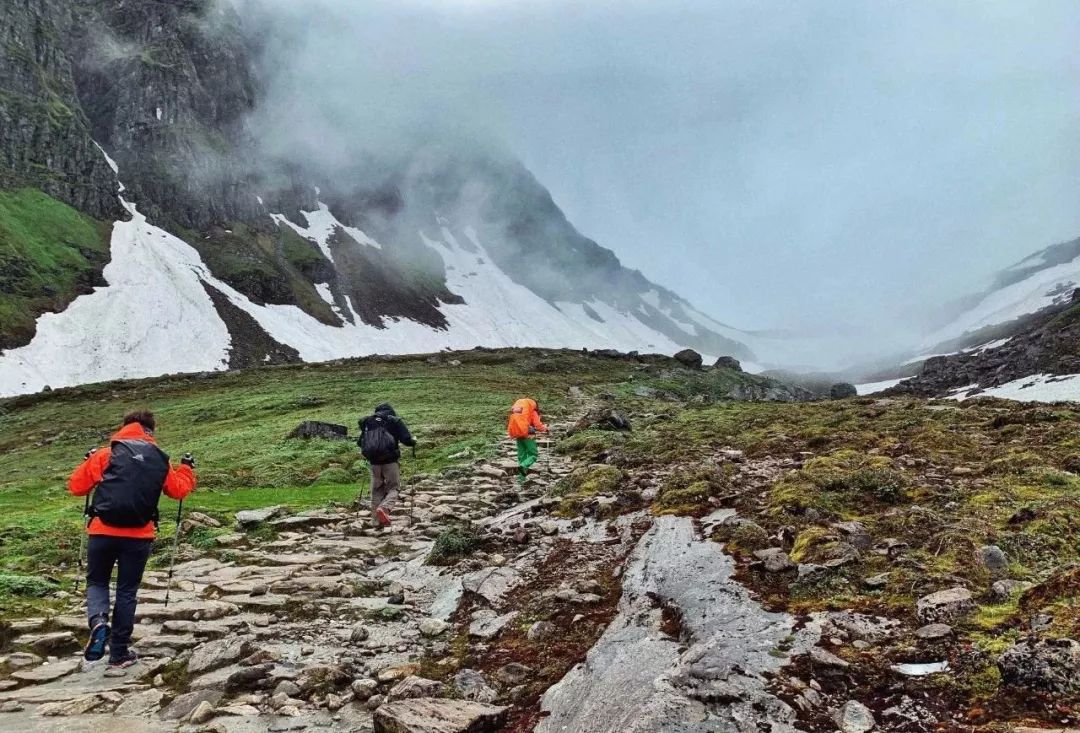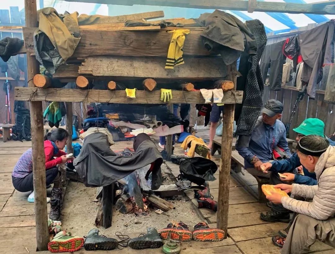 大水过后,没走很远就到达了今天的牧民房,拉格到汗密总长25公里,我们只走了它一半的路程,那牧民房必备项目,烤火吃饭,玩游戏,游戏高于昨天之烧脑游戏狼人杀。作为官方法官一刀,严谨有序,所以说不会烧脑游戏的徒步者不是一个好大夫。7月24日,我们一早从大岩洞出发前往汗密,泥泞已经再次向我们招手,走在这里总会有一种飞升上仙的即视感。